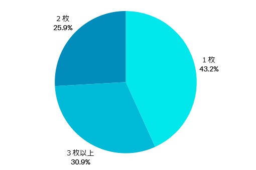 クレジットカードの保有枚数は1枚が43.2%で最も多かったが、3枚以上持っている人も30.9%いた。