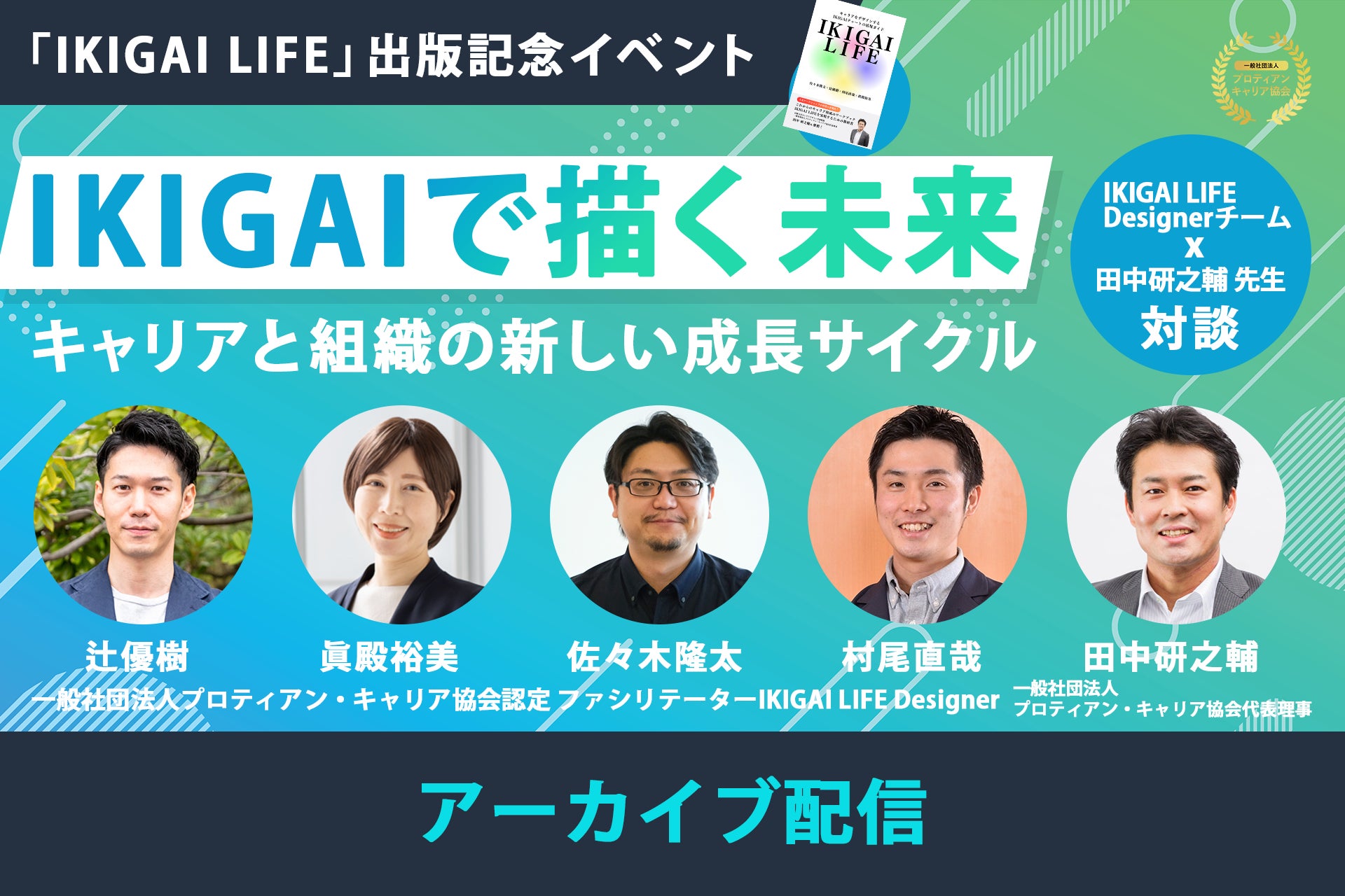 一般社団法人プロティアン・キャリア協会(東京都新宿区、代表理事:田中研之輔・有山徹、以下「当協会」)は、組織と個人のより良い関係構築と個人の主体的なキャリア開発を支援する団体です。この度、2024年7月3日(水)に開催した「IKIGAI LIFE」出版記念イベント「IKIGAIで描く未来:キャリアと組織の新しい成長サイクル」のアーカイブ配信を開始したことをお知らせいたします。IKIGAI LIFE Designerメンバーとプロティアン・キャリア協会代表理事の田中研之輔にて「IKIGAIチャート」について対談しました。本イベントを通じ、IKIGAIチャートをどのように活用し、キャリア開発につなげるかのヒントが得られます。