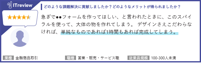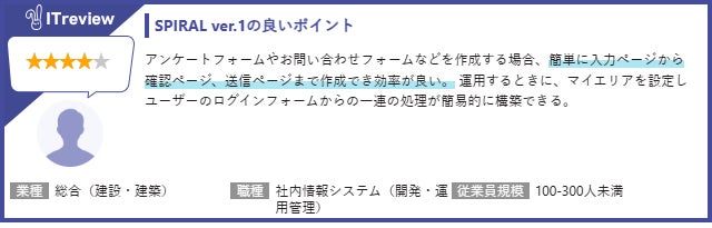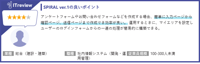 「SPIRAL ver.1」に対するITreviewユーザー評価 ※一部抜粋