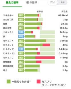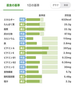 ・カロリーと各種栄養素14項目*³の過不足をグラフ表示