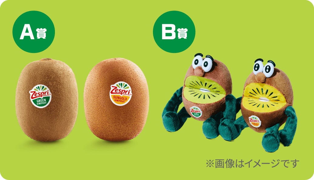 A賞:ゼスプリ・グリーンキウイ1カ月分もしくはゼスプリ・サンゴールドキウイ1ヶ月分(各5名様)