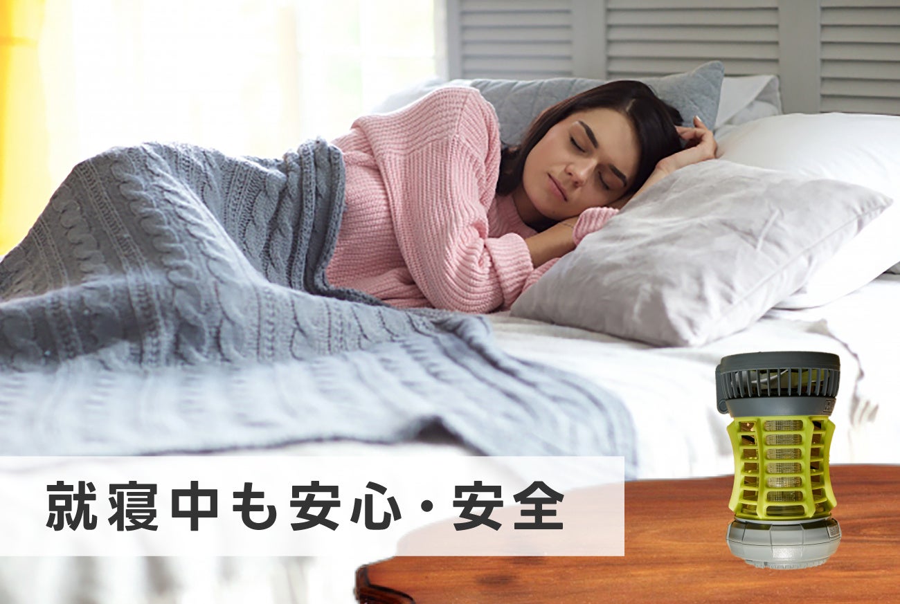 不快な虫から守ってくれるだけでなく、送風機能やライト機能で、より快適な空間を演出することができます。