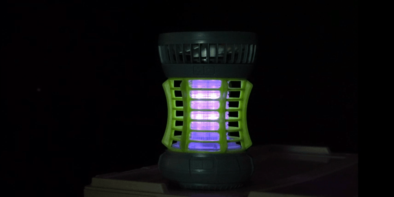 殺虫灯部分のLEDでは、虫が反応するとされるUV-Aの紫外線を放っており、