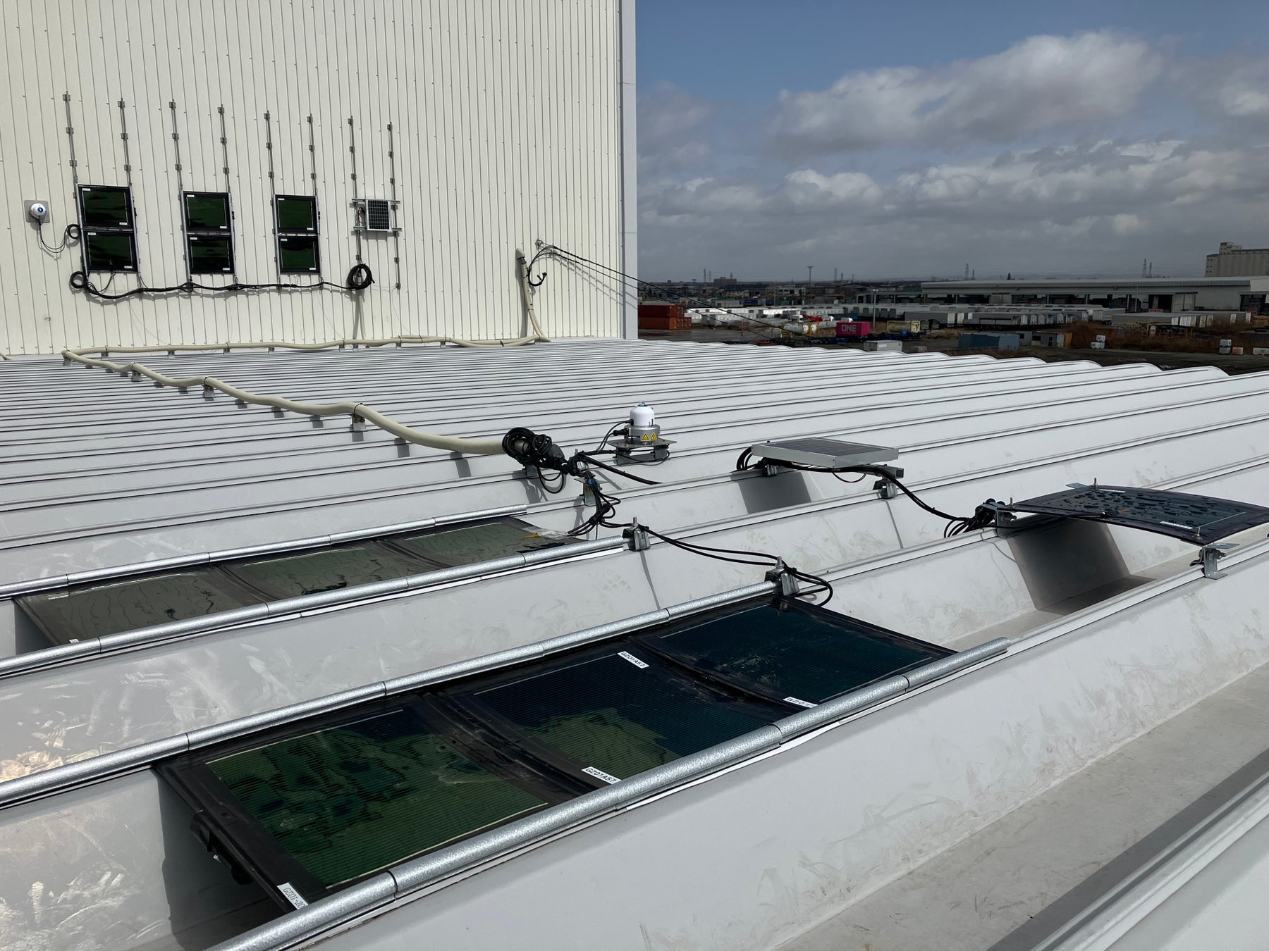 3社は、2023年10月に実証実験の開始を決定して以降、施工方法の検討、物流倉庫へのペロブスカイト太陽電池の設置を行い、実験設備の調整を行ってきました。