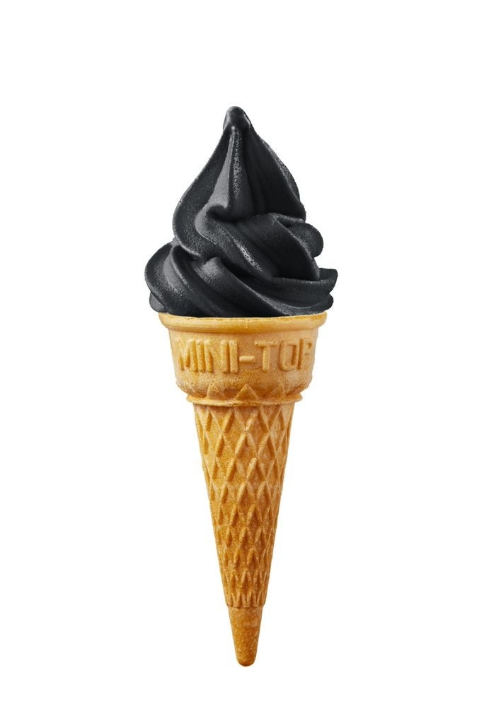 竹炭で仮装した真っ黒なソフトクリーム。見た目からは想像がつかない味にアッと驚くはず!