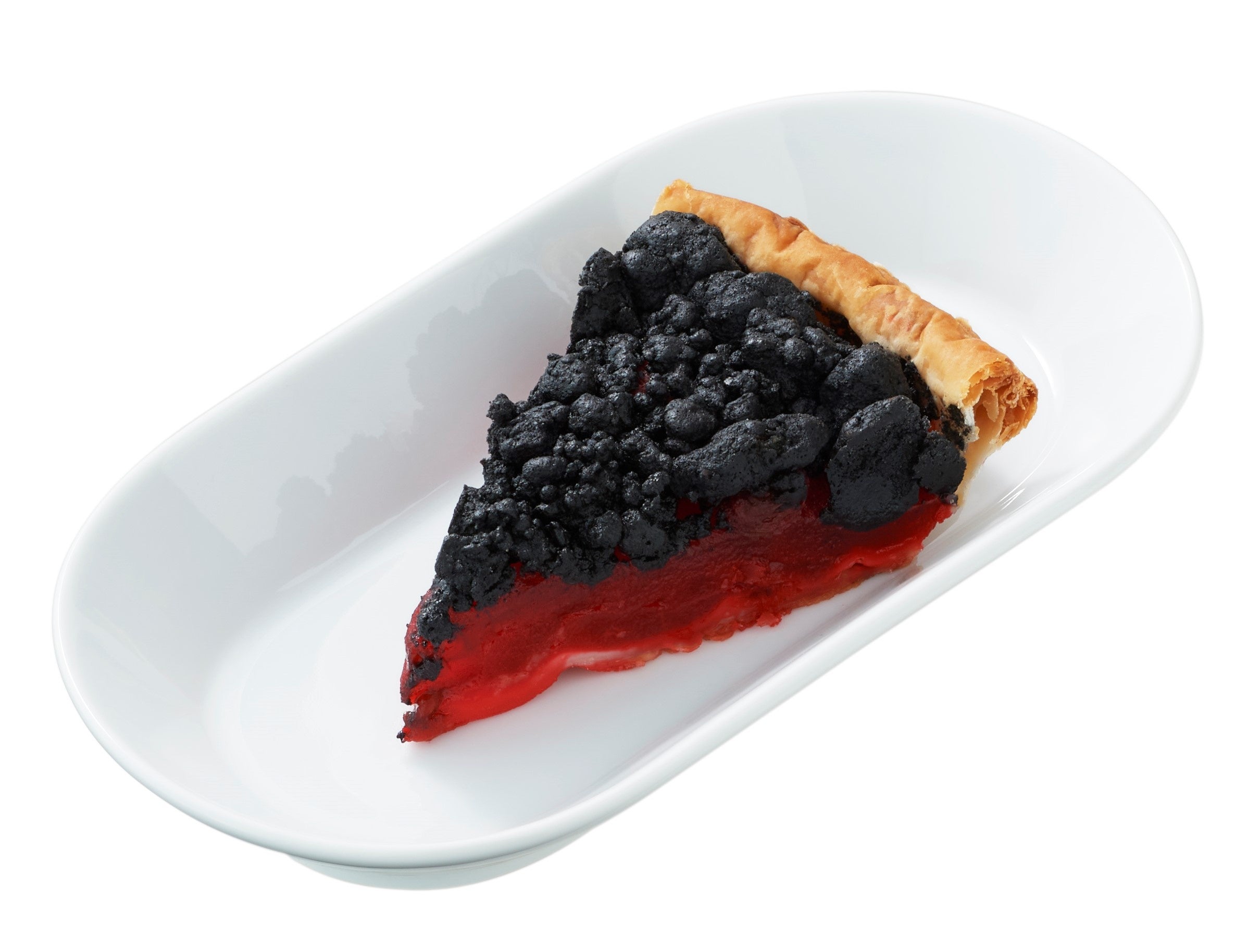 竹炭の黒色とフィリングの赤みの配色がヴァンパイアを思わせる一品。クランブルのざくざく感と分厚いりんごのシャキシャキ食感がたまらない!