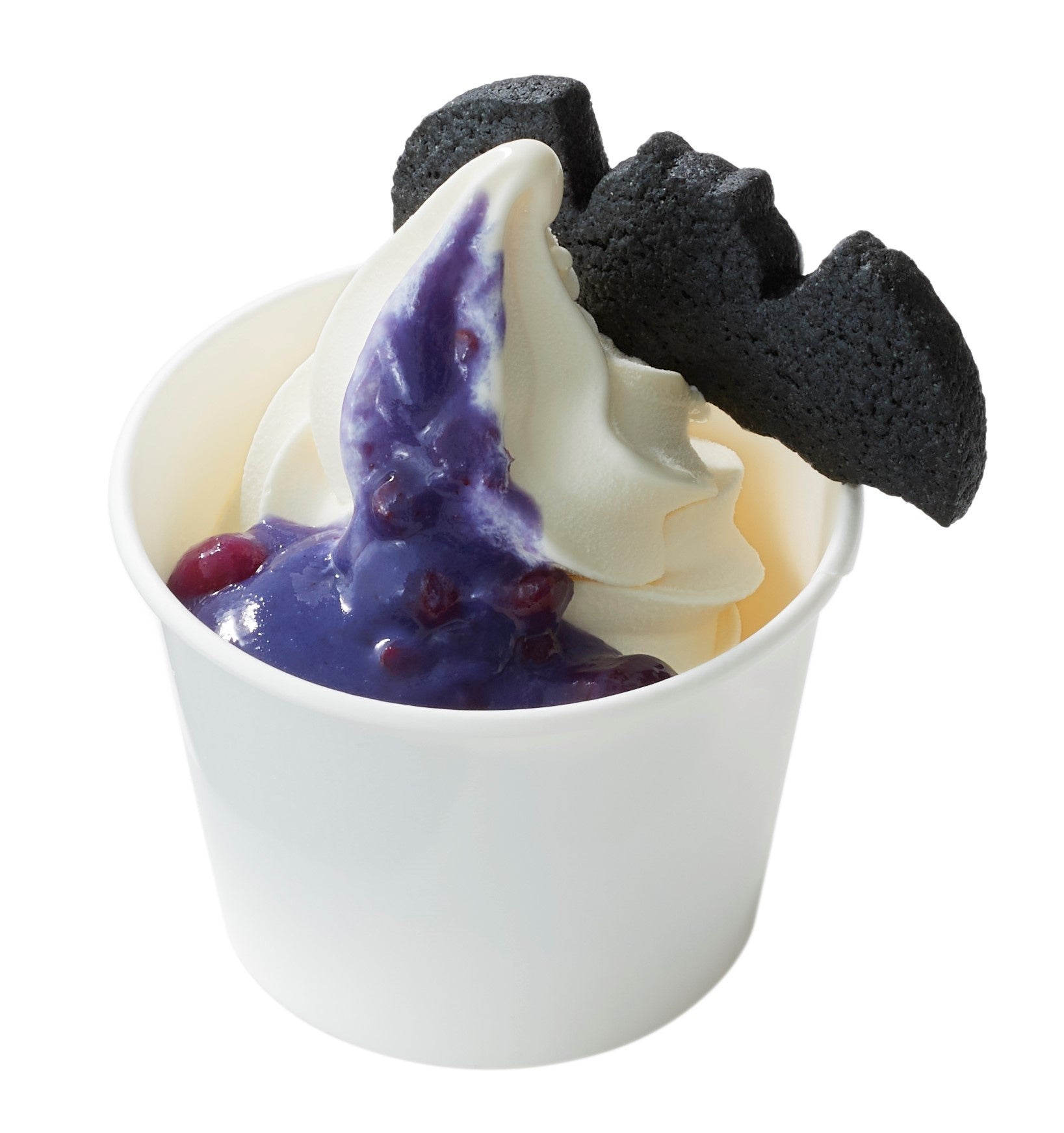 まるで魔女の大鍋から出てきたような、紫色のソースはベリー味。コウモリ型のクッキーと一緒にどうぞ。