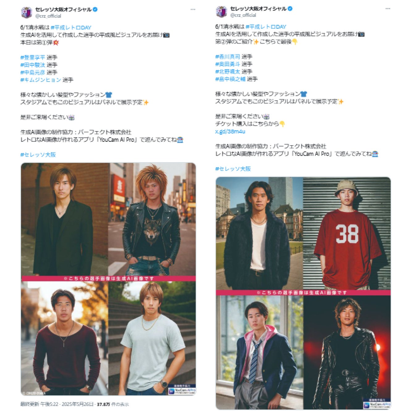 イベント開催前から、セレッソ大阪公式X(旧Twitter)では、生成AIで加工された選手画像が先行公開され、大きな反響を呼びました。