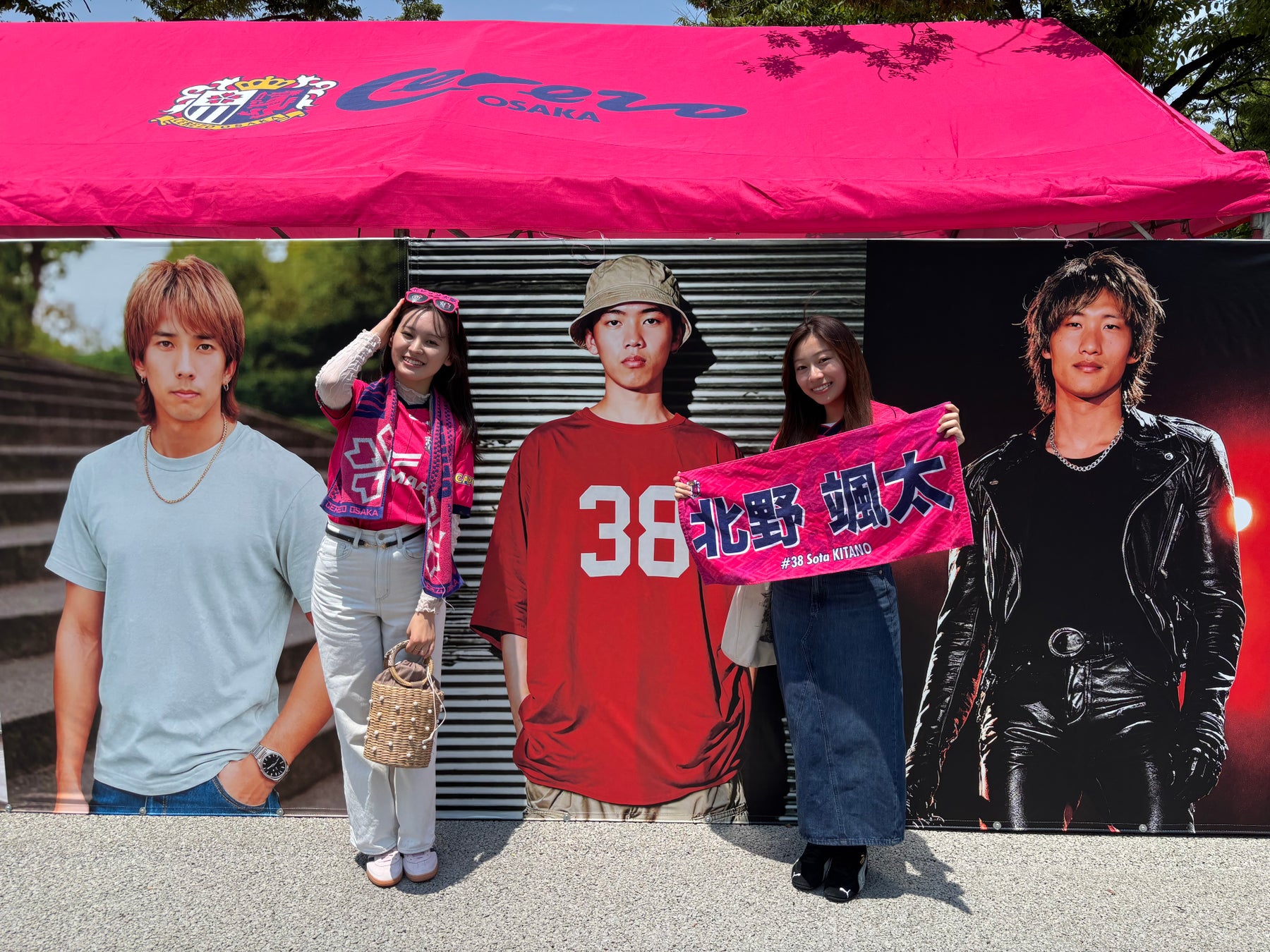 この日は、北野颯太選手のラストゲームでもあり、北野選手のパネルは特に人気を集めました。セレ女(セレッソ女子)をはじめとする女性ファンや、子ども連れの家族にも大好評で、世代や性別を問わず多くの人々が笑顔で写真を撮影する様子が印象的でした。セレッソ大阪が老若男女問わず広く愛されていることを実感できる一幕となりました。