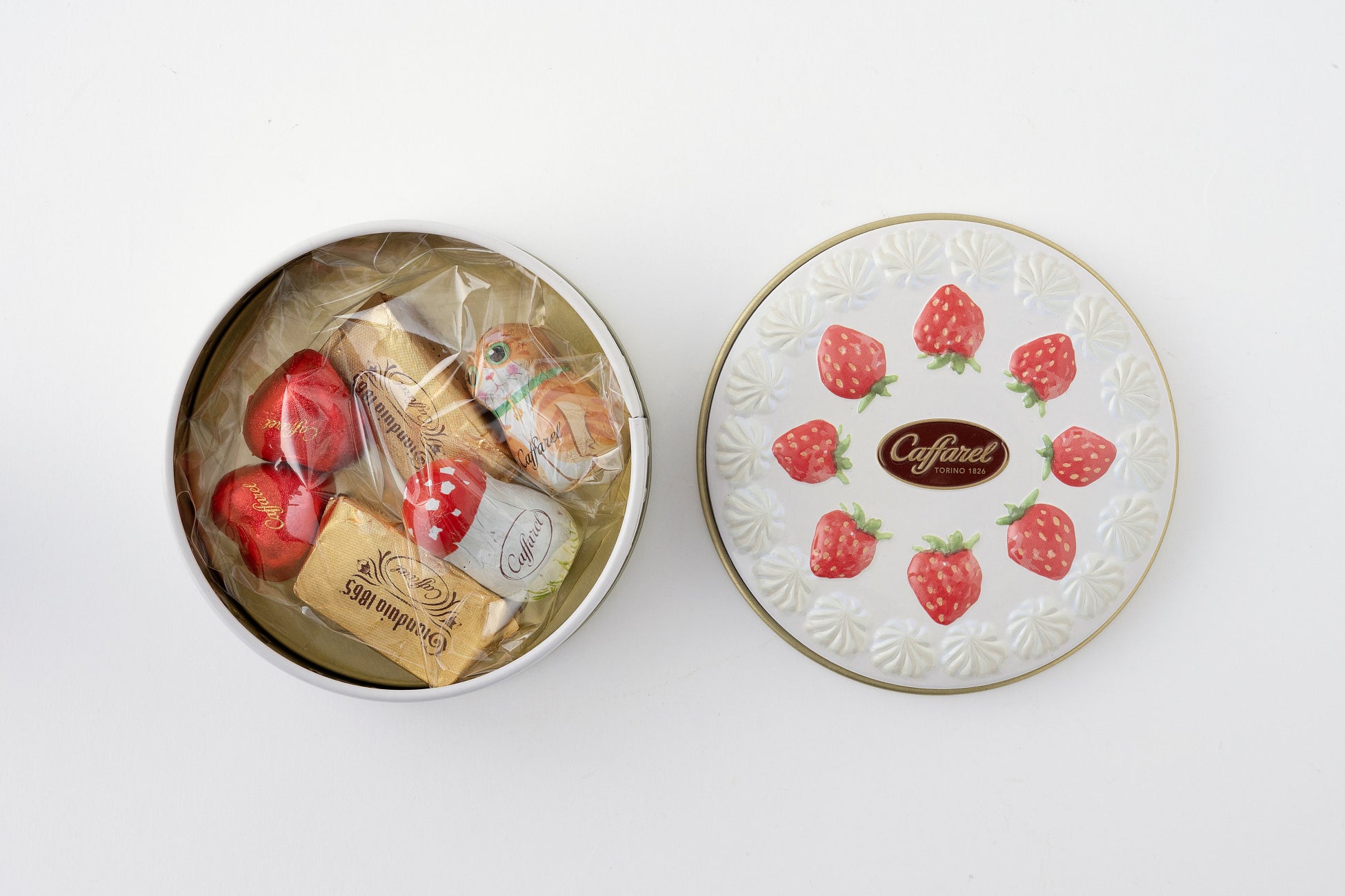 詳細:クリスマスシーンを盛り上げるケーキ缶が復活!中には定番のジャンドゥーヤをはじめ、キャットやきのこ、ミニハートのホイルチョコレートが全6粒アソート。専用のケーキボックスには持ち手もついており、本物のケーキのように持ち運べます。プレゼントにも喜ばれる商品です。