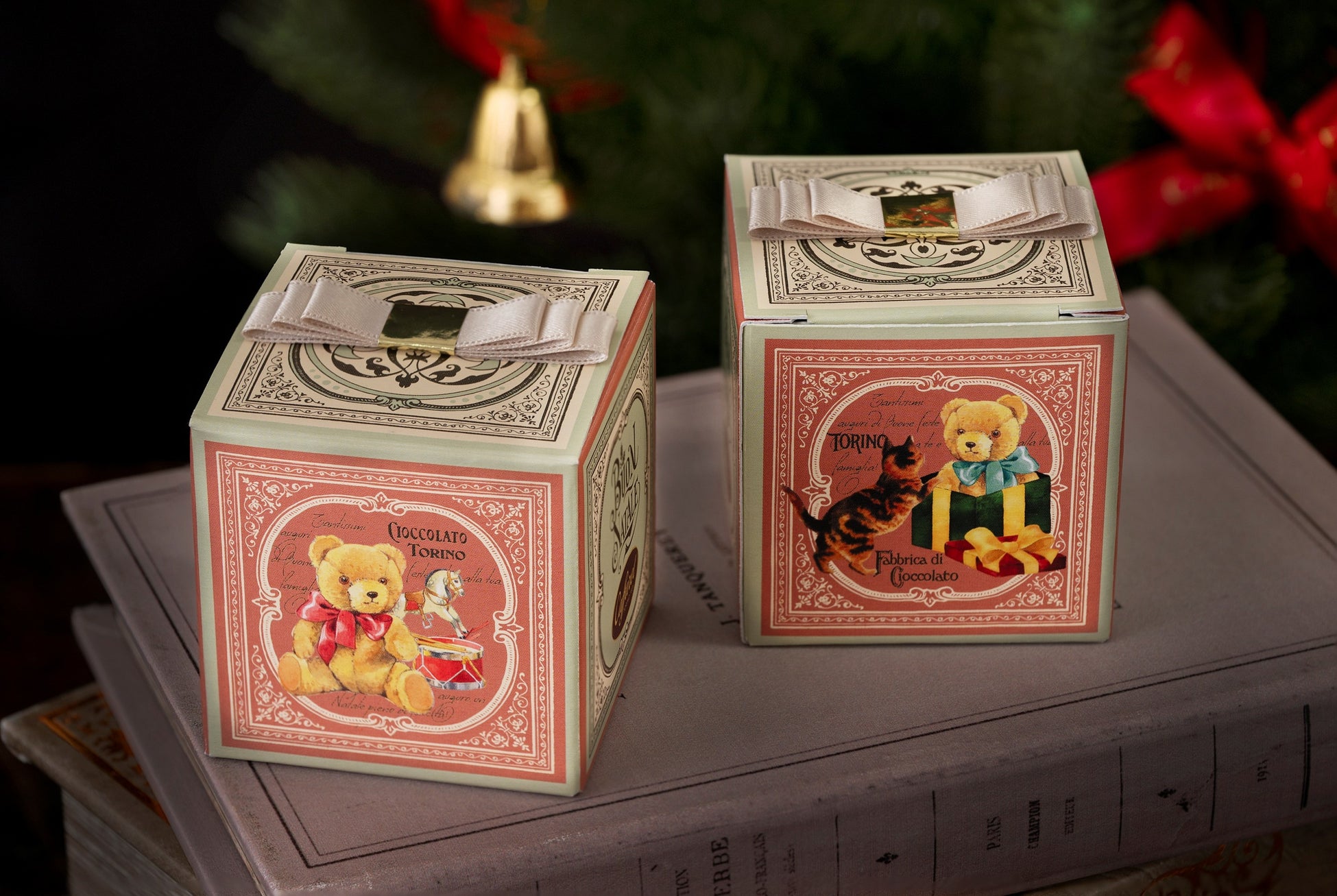 詳細:リボンがついたクリスマスボックスには、可愛いテディベアがプレゼントや猫と共に描かれています。クラシカルなつる草模様もアンティークな雰囲気を演出。定番のジャンドゥーヤやサンタのホイルチョコ、ピエモンテなど合計3粒をアソート。プチギフトにお勧めです。