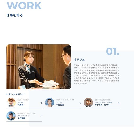 サンフロンティアホテルマネジメント株式会社(本社:東京都千代⽥区、代表取締役社⻑:堀⼝ 智顕、以下:当社)は、新卒採⽤およびキャリア採⽤の強化に取り組んでいます。この度、求職者の皆様への採⽤情報の充実を⽬的に、採⽤サイトを全⾯リニューアルいたしました 。
