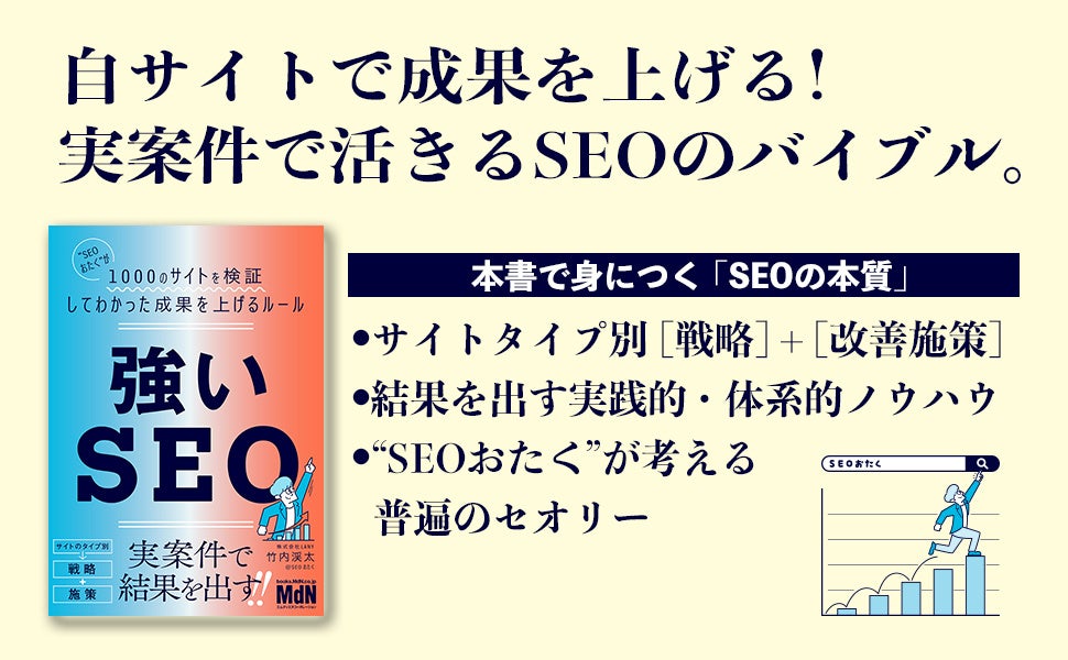 SEOコンサルティングをはじめとした幅広いデジタルマーケティングを提供するLANYの代表であり、SEOの最新情報を発信する「SEOおたく」の中の人でもある竹内が、自身の実績と経験から導いたノウハウを余すことなく伝える本です。