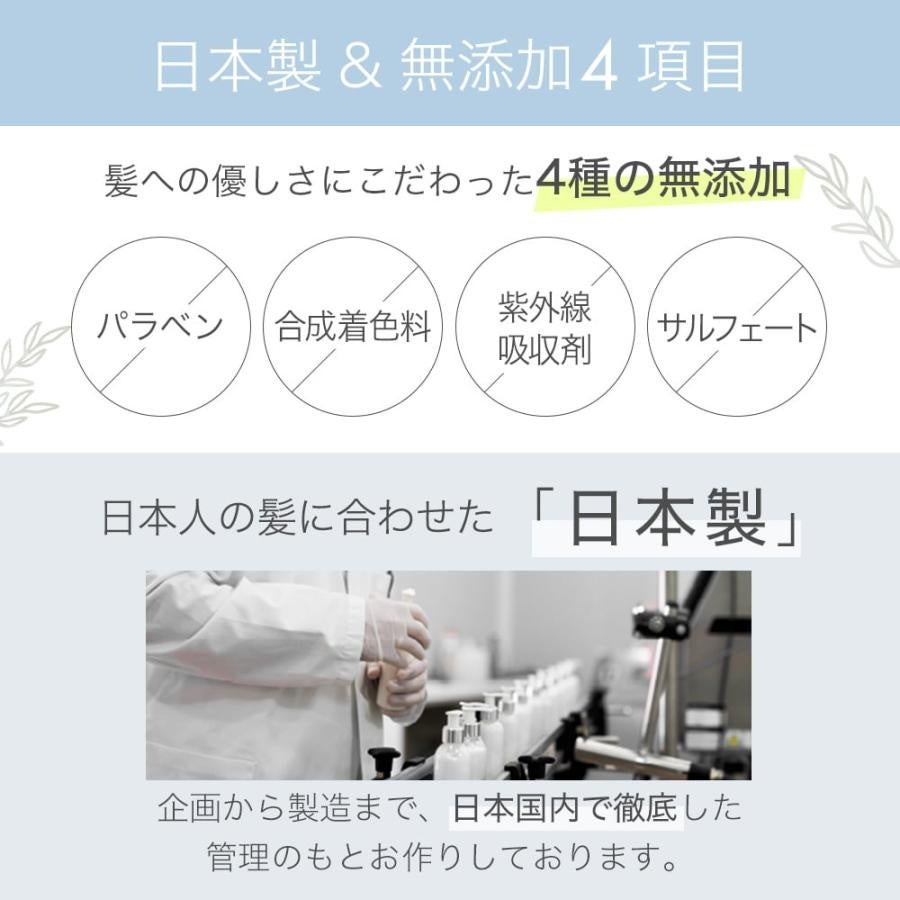 また、4種の無添加成分により髪へのやさしさにもこだわりました。