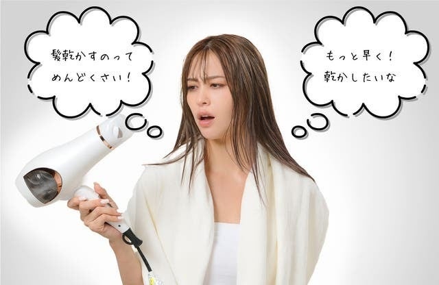 10名でテストした結果なんとドライヤーの乾燥時間が平均で47秒も短縮!長時間のドライヤー熱から髪を守ります♪