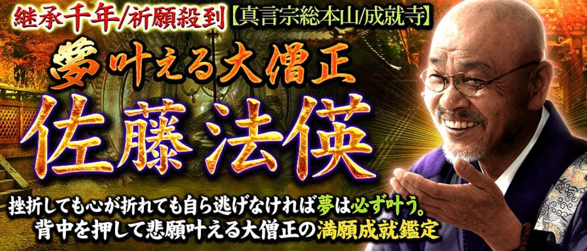 成就寺大僧正『佐藤法偀』による鑑定が、占いポータルサイト「うらなえる本格鑑定」で提供開始!