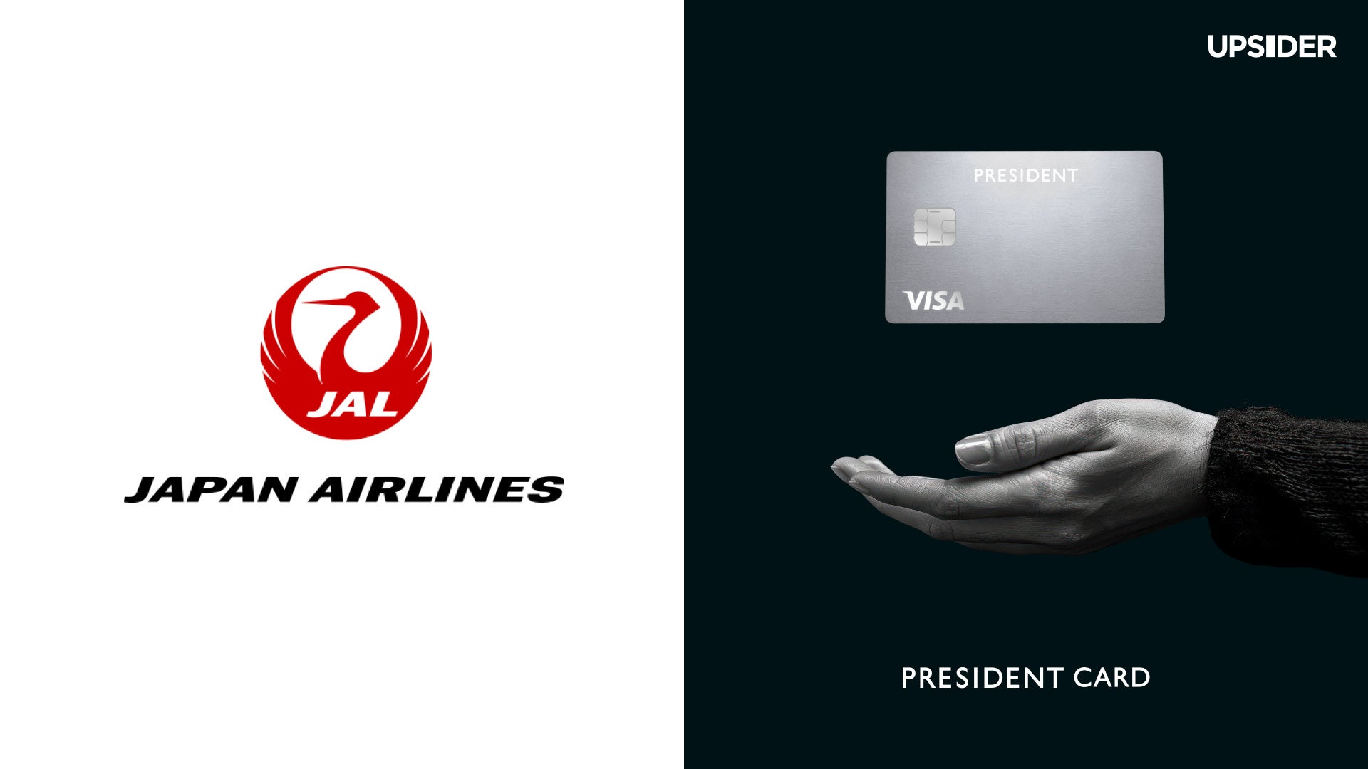 AIを活用した次世代法人カード「UPSIDER」を提供する株式会社UPSIDER(代表取締役:宮城 徹・水野 智規、本社:東京都港区、以下 当社)は、経営者を強力に支援する新たな法人カード「PRESIDENT CARD(プレジデント カード)」を新規事業としてリリースいたします。PRESIDENT CARDは、日本航空株式会社(本社:東京都品川区、以下 JAL)との提携により提供を開始し、PRESIDENT CARDの利用金額に応じて還元されたポイントはJALマイルに上限無制限にて交換することが可能です。