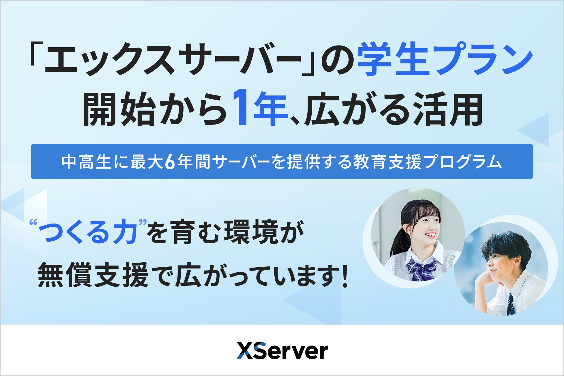 こうした背景を踏まえ、すべての中高生が“つくる力”に挑戦できる環境を提供すべく、2024年春に教育支援プログラム『エックスサーバー 学生プラン』をスタートしました。