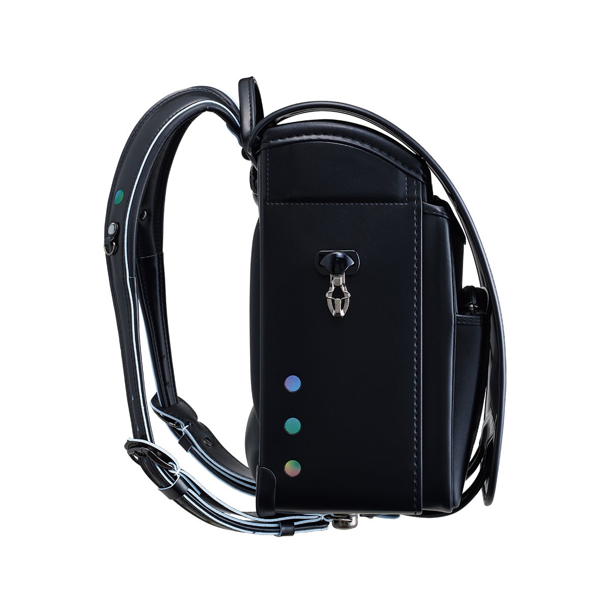 地球の機能である「23.4度の地軸」をかぶせのデザインで表現。地球と生きる子どもたちを見守りたいという思いを込めました。王道のブラック、ネイビーに加え、色とりどりで多様な個性を尊重するレインボーをラインナップした3色展開。カブセの地軸デザインと、肩ベルトとサイドの地球デザインは反射板になっており、暗がりでも光ってくれます。また、軽くて丈夫な素材クラリーノエフを使用。しなやかで体なじみがよいため、できるだけ負担の軽いランドセルを試したいお子さまにおすすめです。