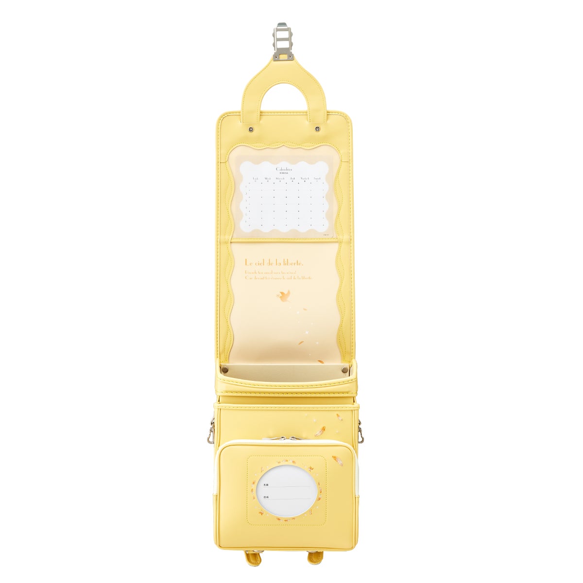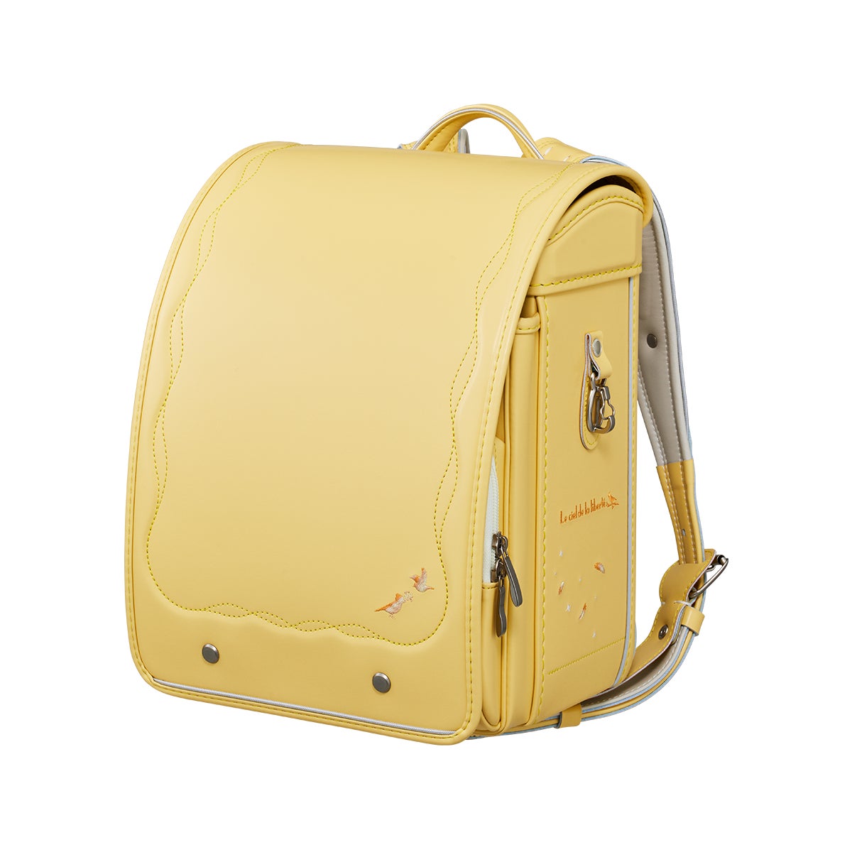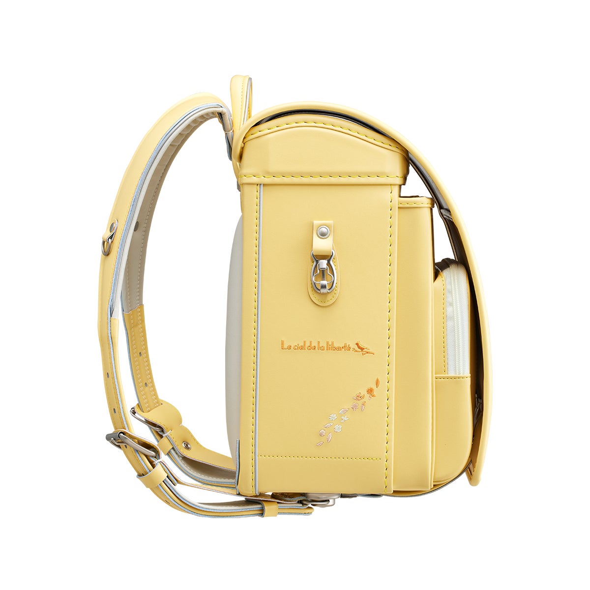 グラデーションカラーの小鳥と羽のデザインが6年間飽きを来させない、大人ガーリーなシリーズ「リベルテエール」に、パステルイエローが仲間入り。トレンドのライラックやミントなどをラインナップし、選ぶのが難しいほどおしゃれな5色展開です。パステルイエローは、毎日を明るい気持ちにしてくれること間違いなしのランドセルに仕上がりました。