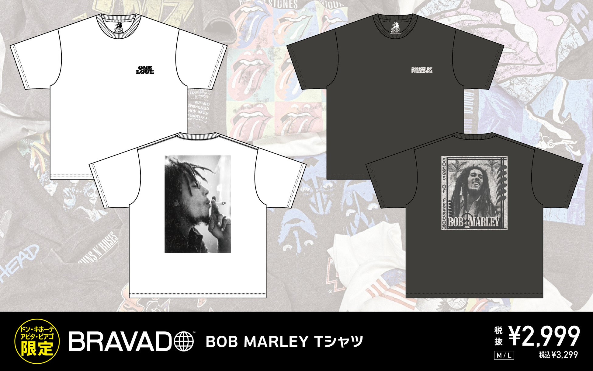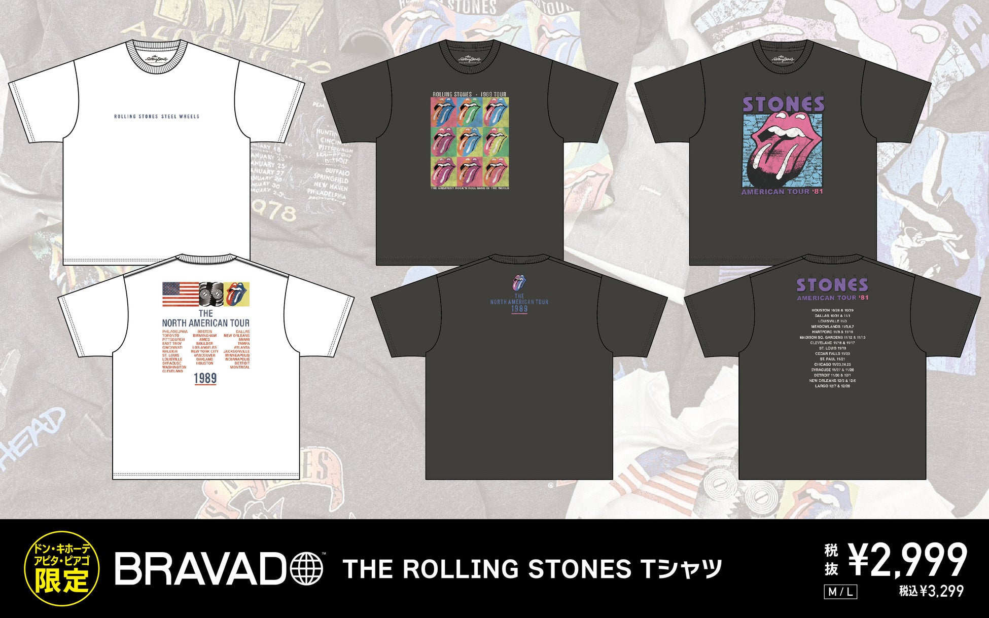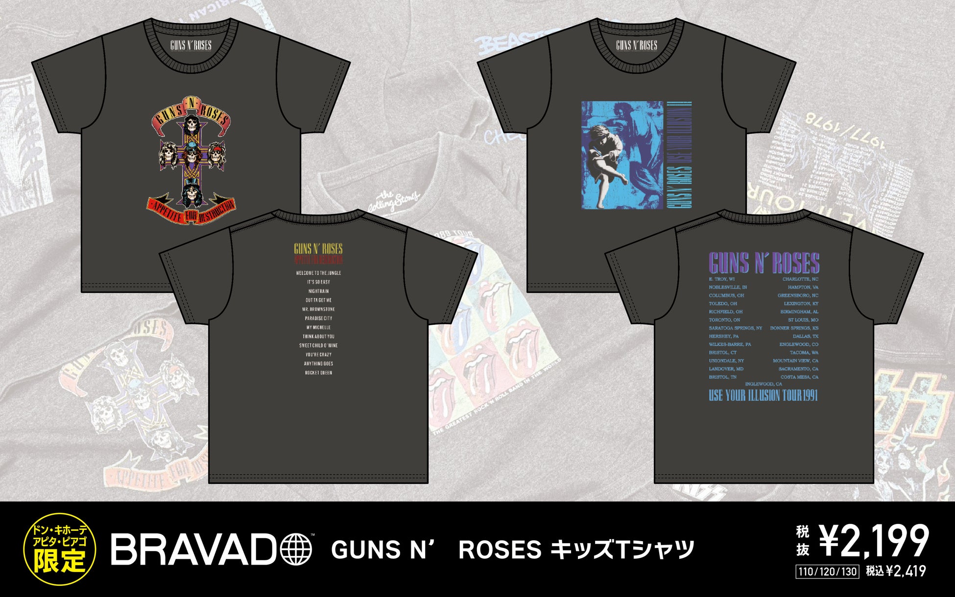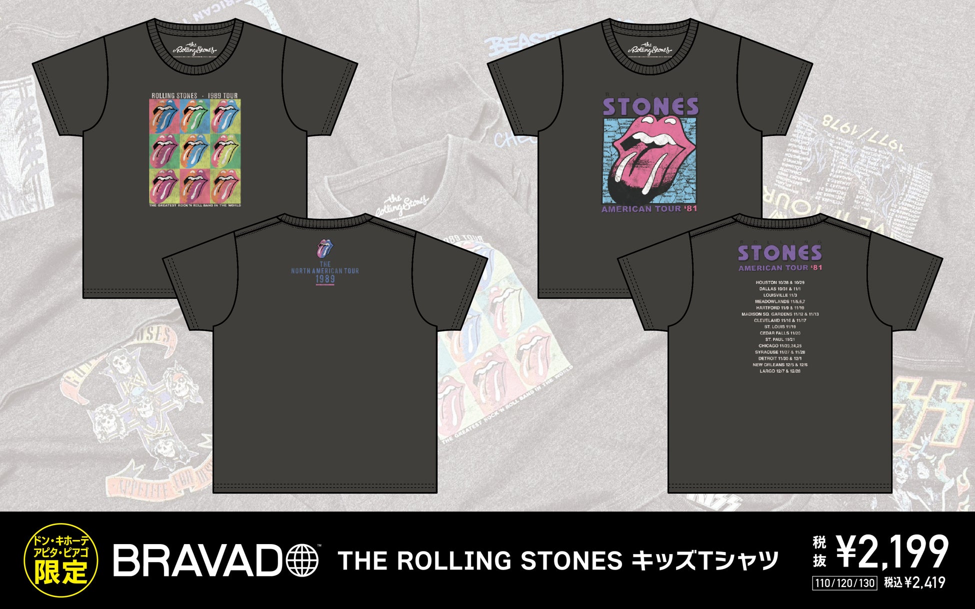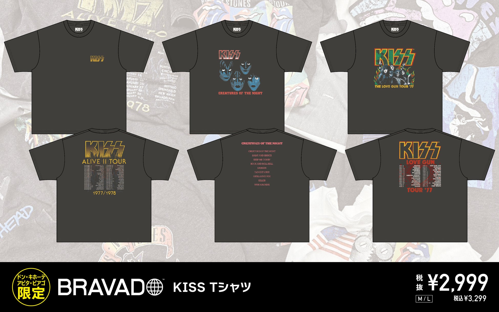 THE ROLLING STONES、KISS、BOB MARLEY、GUNS N’ ROSESなどのアーティストTシャツを、全国のドン・キホーテ・アピタ・ピアゴ店舗限定で、4月末日より順次発売開始!