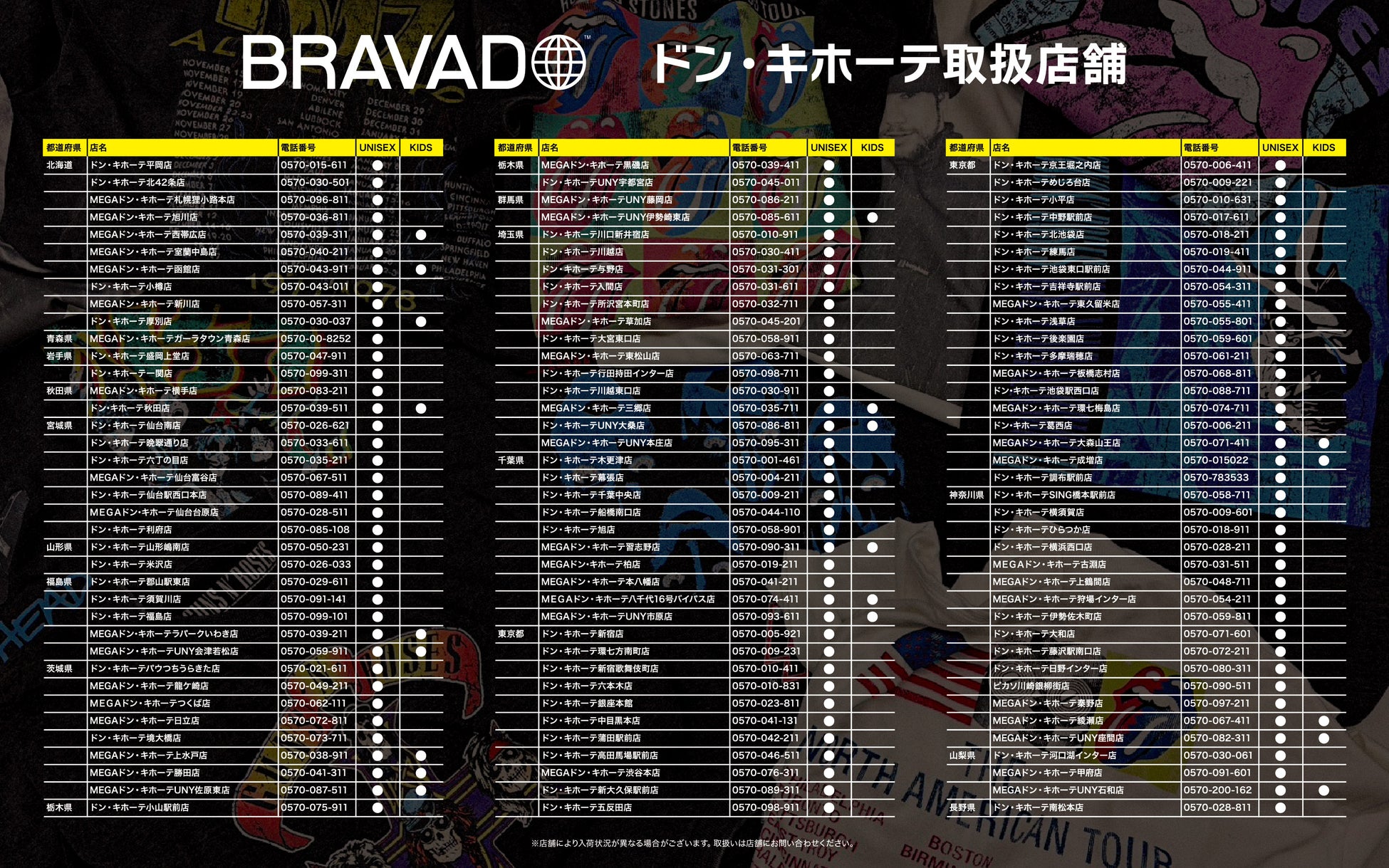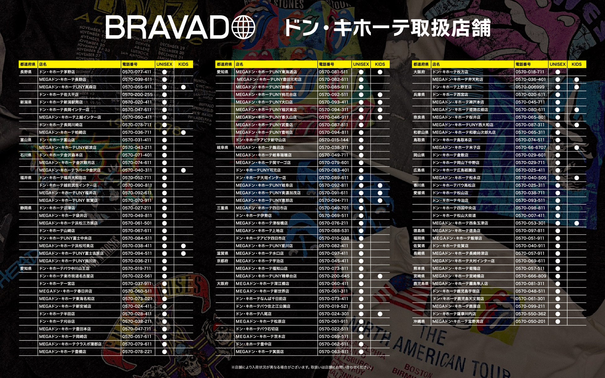 ドン・キホーテ、アピタ、ピアゴ限定のBRAVADO アーティストの古着テイストなTシャツをこの機会にゲットしてください。