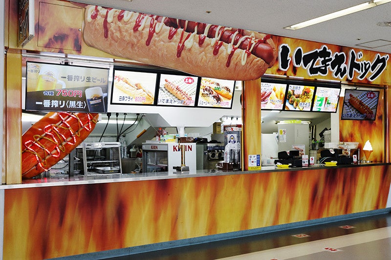 交流戦前夜祭、相手チームグルメとして京セラドーム名物「いてまえドッグ」がエスコンフィールドHOKKAIDOに初登場!30センチを超えるパンに、かけ放題のお好きなソースをトッピングして、オリジナルのいてまえドッグを完成させて下さい。ボリューム満点のいてまえドッグに、かぶりついてしまうはず!