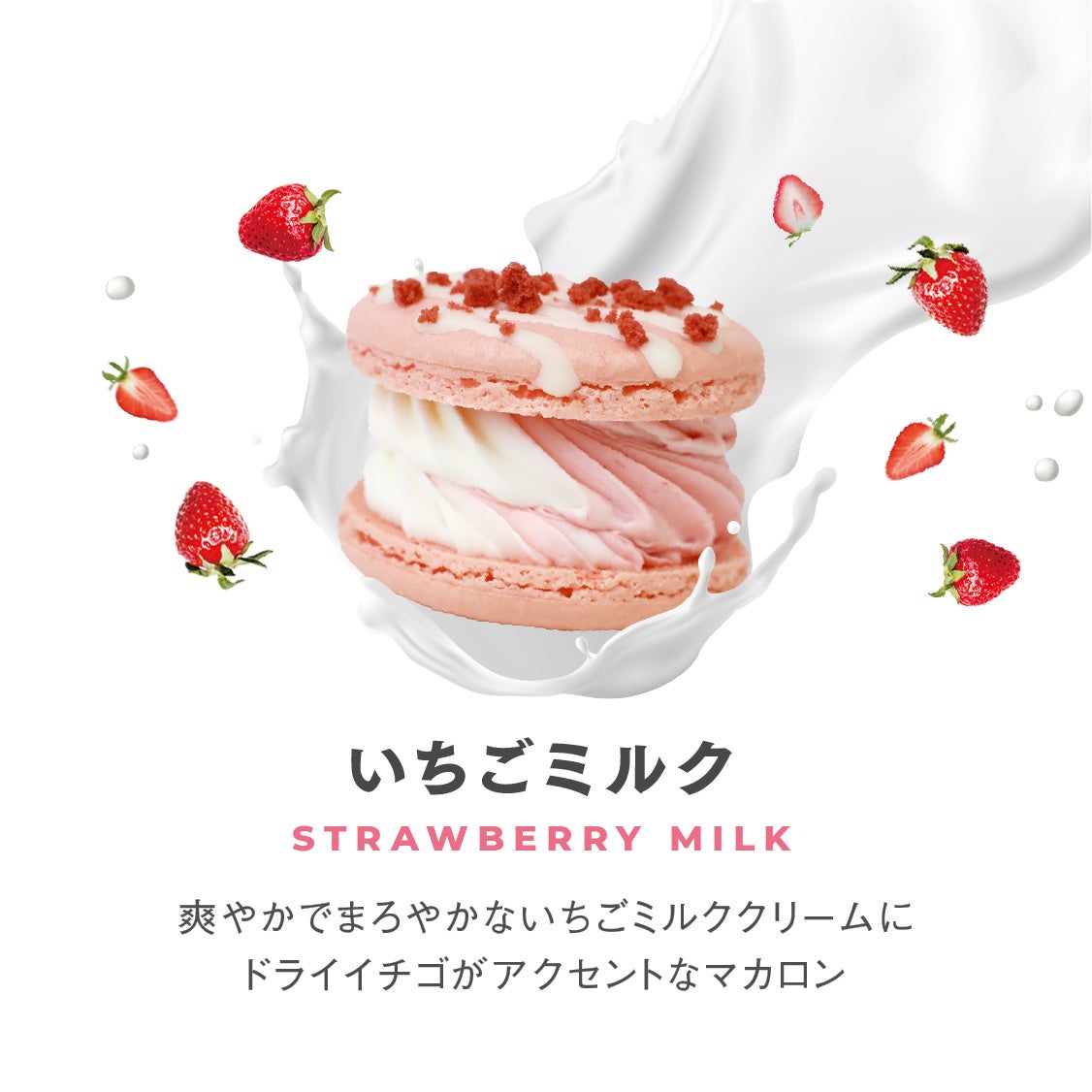 爽やかでまろやかないちごミルククリームにドライイチゴがアクセントなマカロンです。