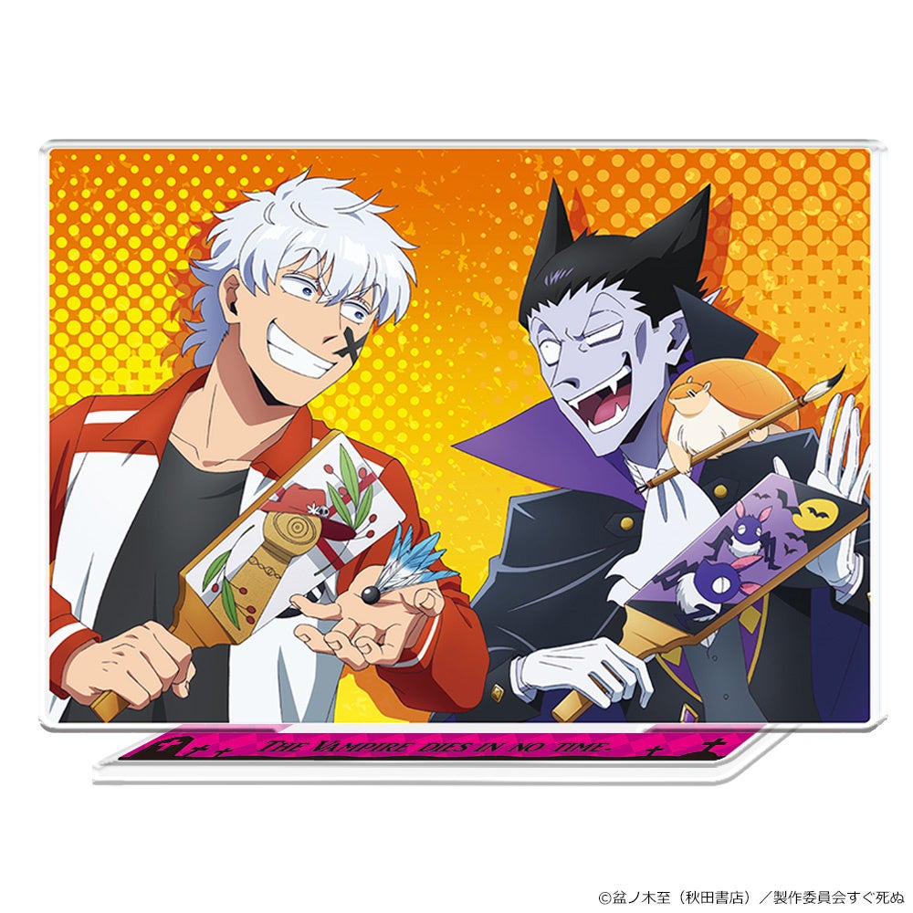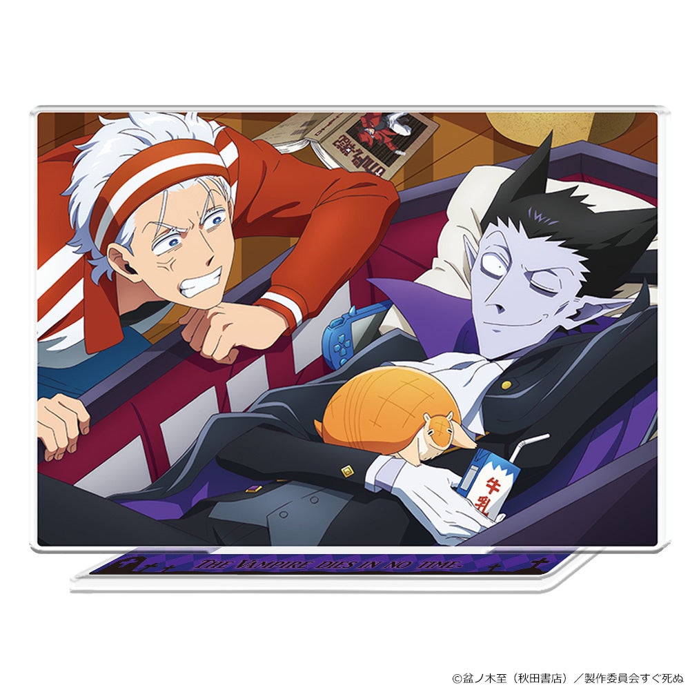 TVアニメ「吸血鬼すぐ死ぬ」のアクリルポートレート、キャラクター大判タオル、90cmビッグタオル(缶バッジ付)の受注を開始!