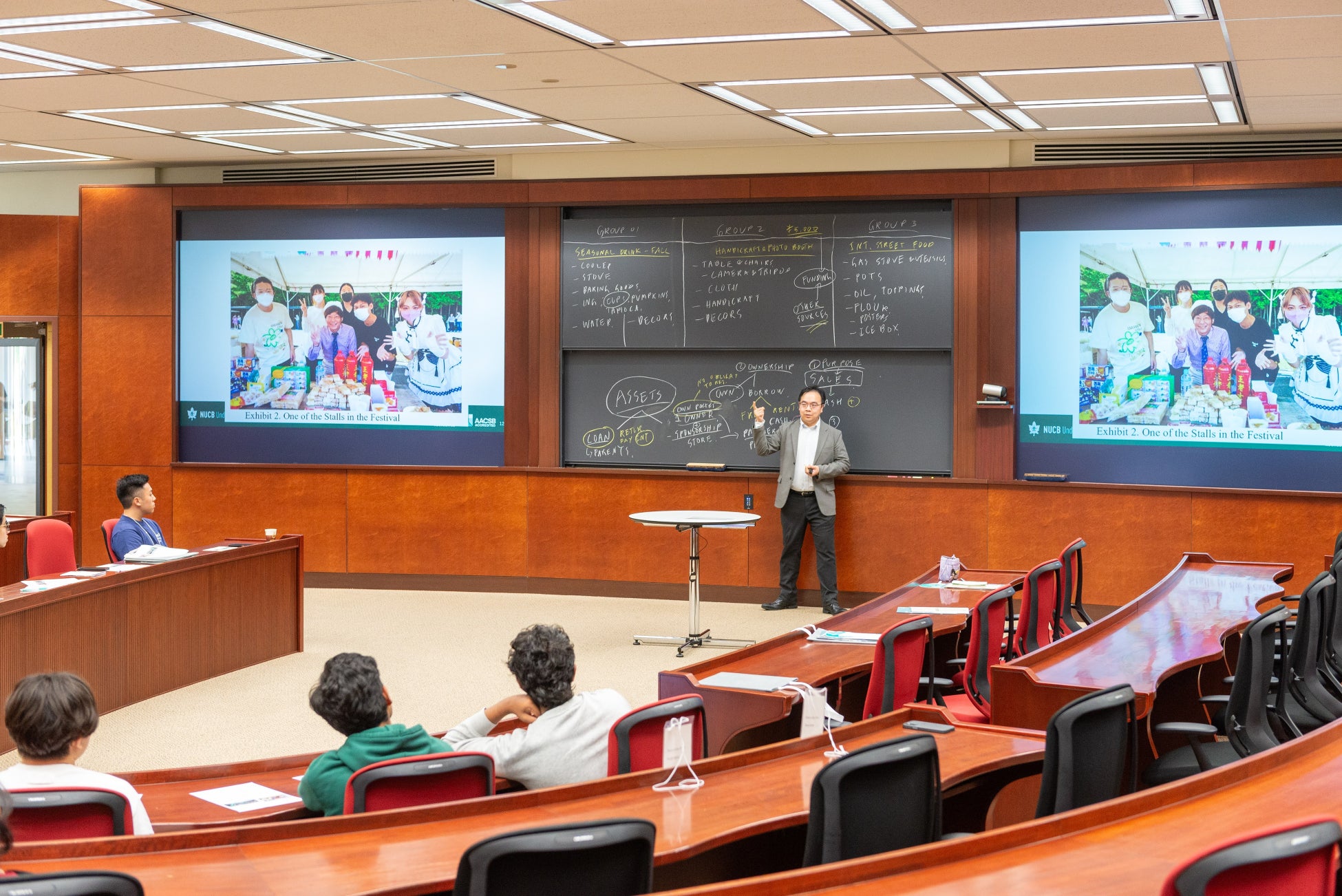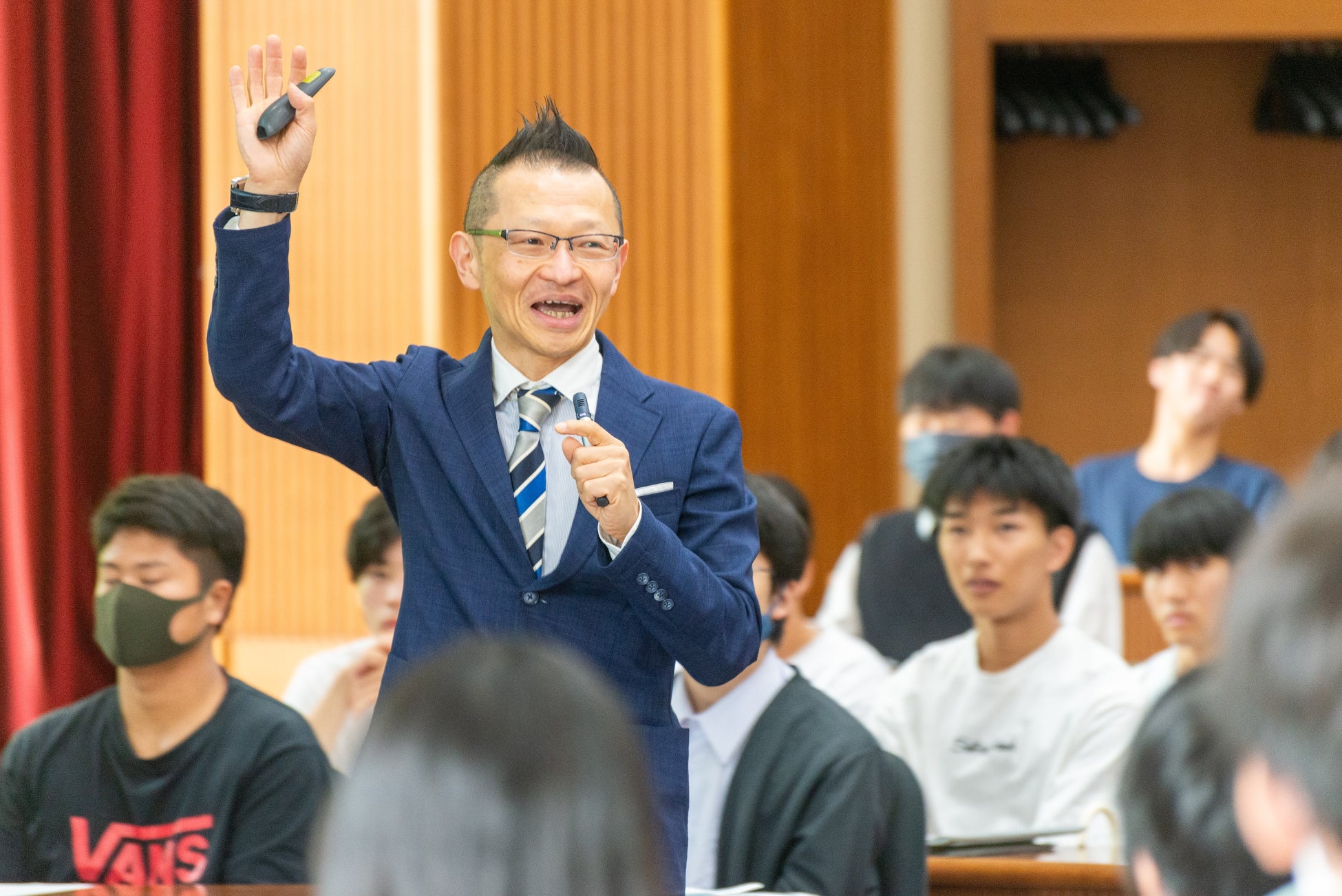本学では、経営課題を自らの視点で考えて探究する力を養う「ケースメソッド教育」を全学的に採用しています。教材は実在する企業の事例。企業の現場における課題を自らの視点で考え、解決する力を養います。学生が主体となって学ぶアクティブラーニングを通し、社会で求められる実践力やコミュニケーション能力・リーダーシップを高め、世界観や視野を広げることができます。他大学には無い「実務」と「理論」のバランスの取れた授業です。