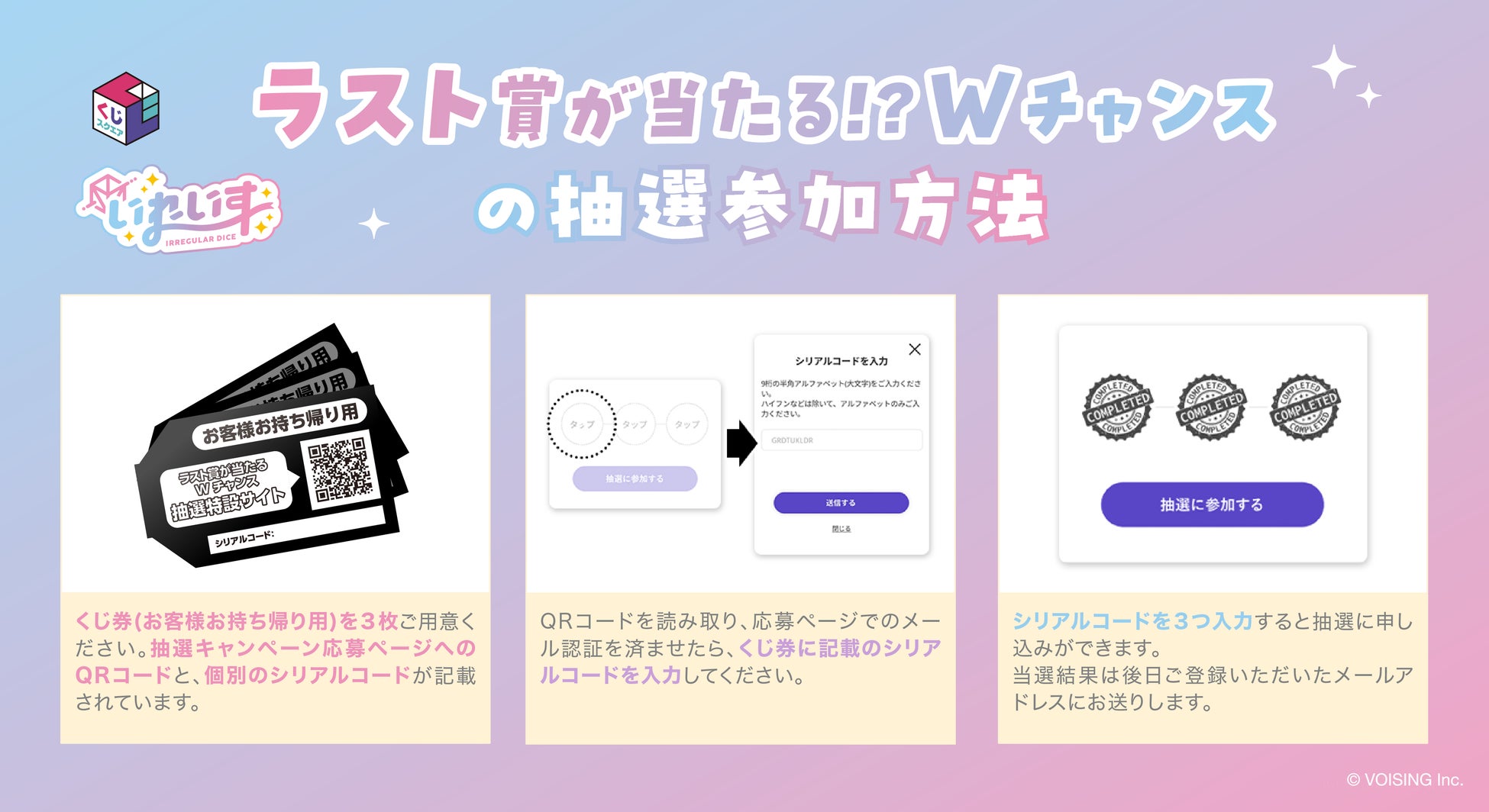 シリアルコード3つの入力で1回応募できるWチャンス賞にて、ラスト賞の『A4アクリルミラー』が抽選で50名様に当たります。