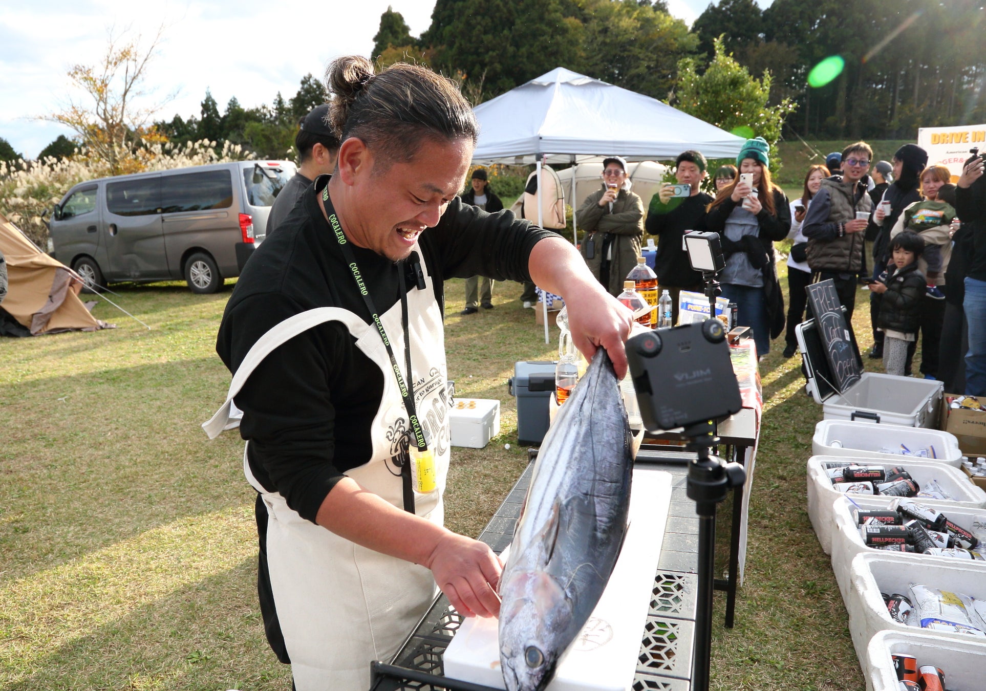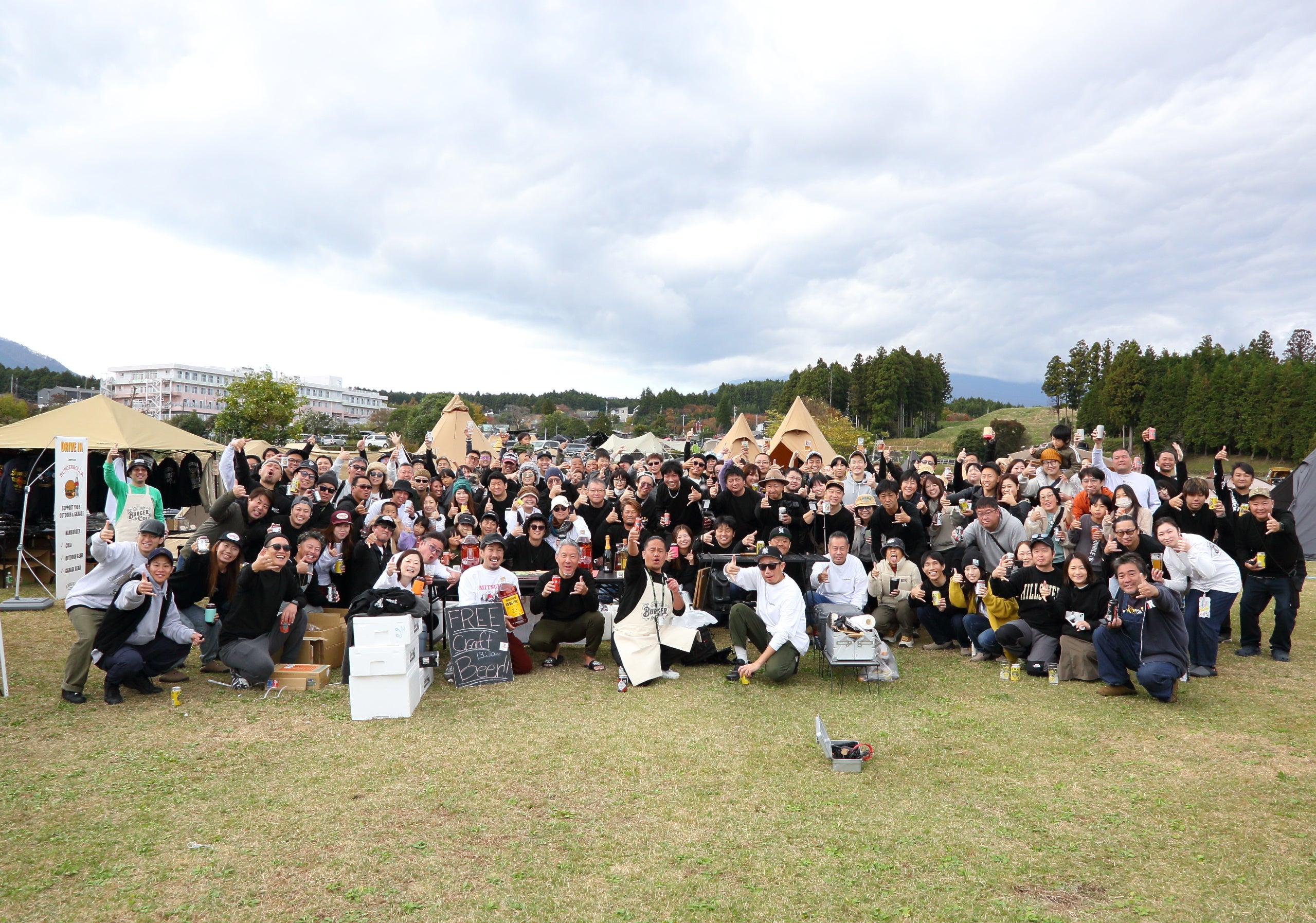 お馴染みの「キャンプ」と「乾杯」をかけた「キャンパぁい!!」の大きな掛け声とともに