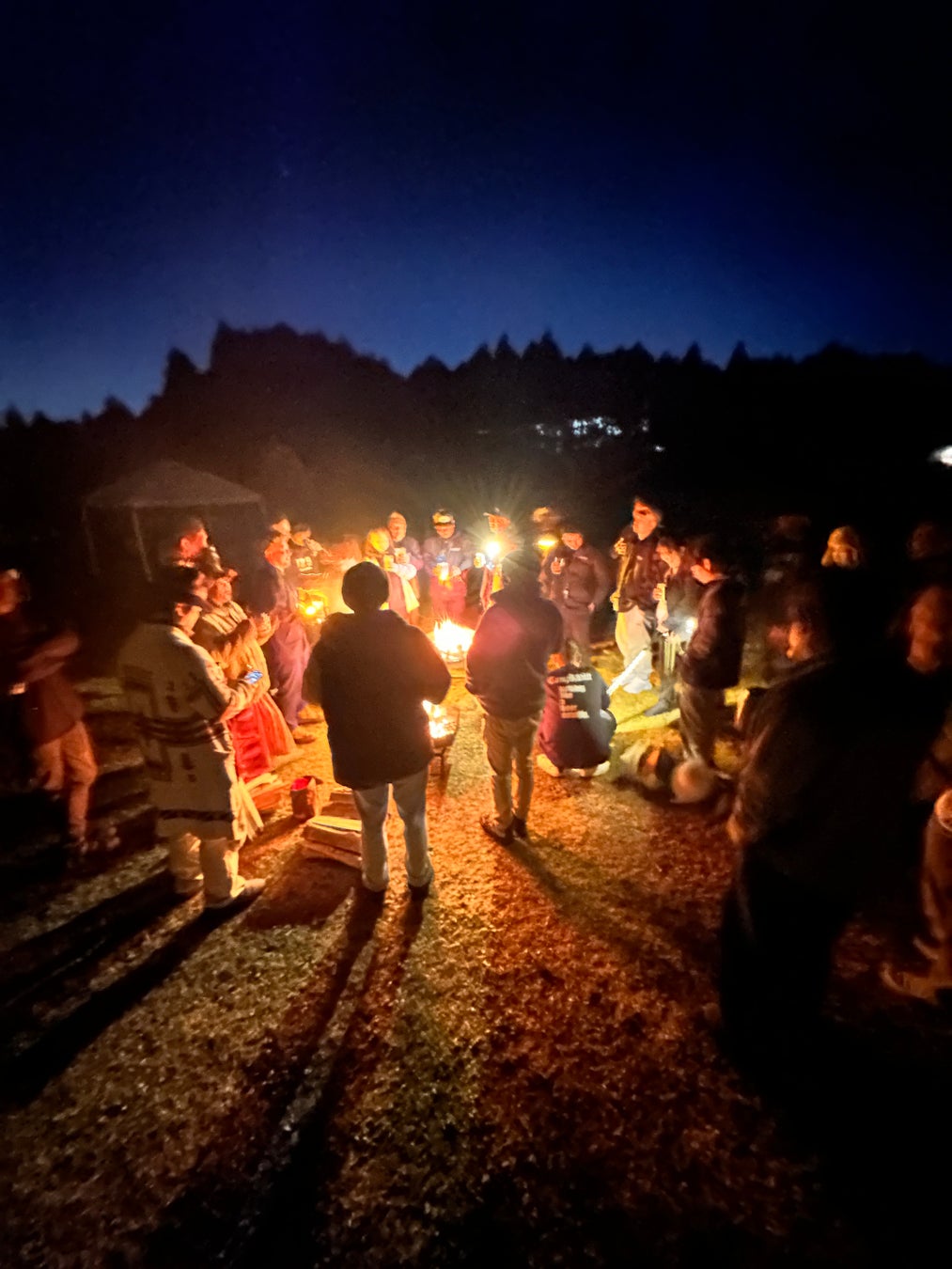 前夜祭では、1つの焚き火を囲み、みんなでお酒を飲みながら和気藹々とお話をしていたり、