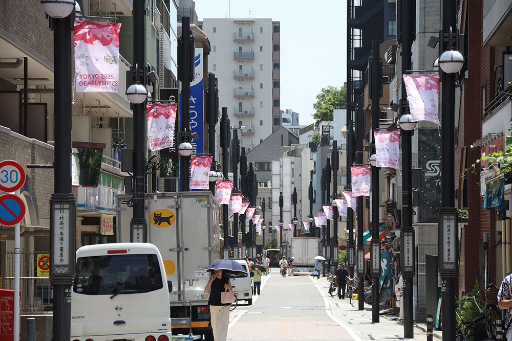 品川区は6月24日(火)から商店街などの街路灯に、日本で初開催されるデフリンピックを盛り上げるためフラッグを掲示しています。