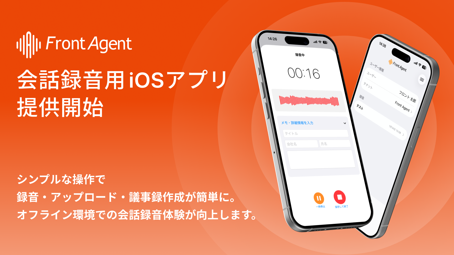 「Front Agent」利用者用iOSアプリをリリース。ユーザーからの要望に応え、オフライン状態での会話録音や、デバイスの負担を減らす