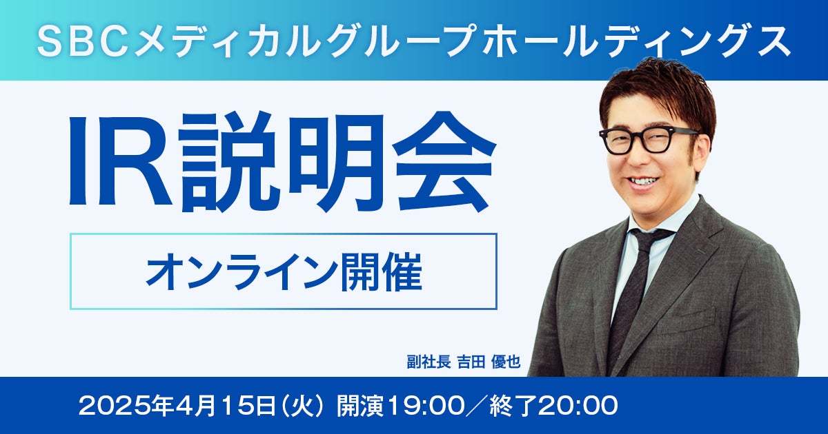 SBCメディカルグループホールディングスは、2025年4月15日(火)19:00~20:00にオンライン決算説明会を開催いたします。
