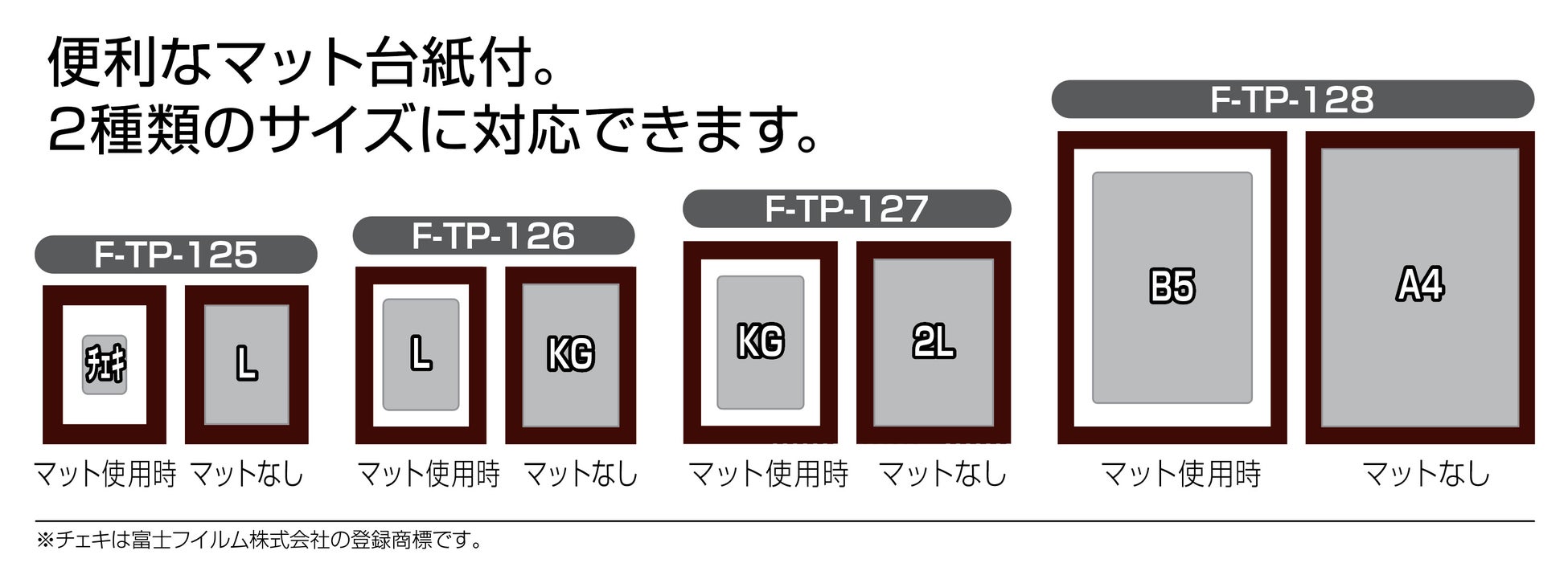 Lサイズ(127×89mm)、KGサイズ(152×102mm)、2Lサイズ(178×127mm)、A4サイズ(297×210mm)の写真に対応