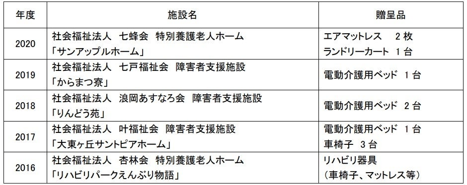 ■過去5回の贈呈先(2019、2020年度は新型コロナウイルスの状況を考慮し贈呈式は中止)