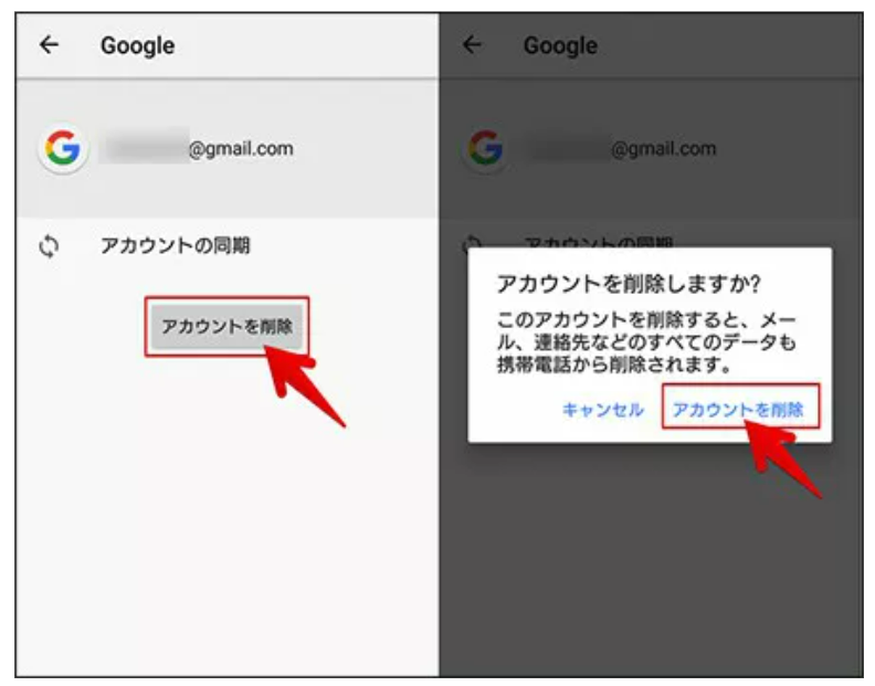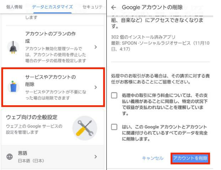 - 対処法3:Googleアカウントの設定からGoogleアカウントを削除する