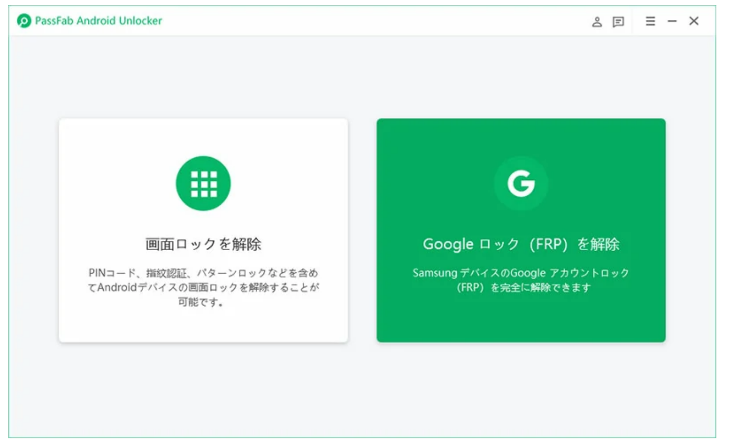 Step1:PassFab Android Unlockをパソコンにダウンロードして起動し、「Googleロック(FRP)を解除」を選択します。