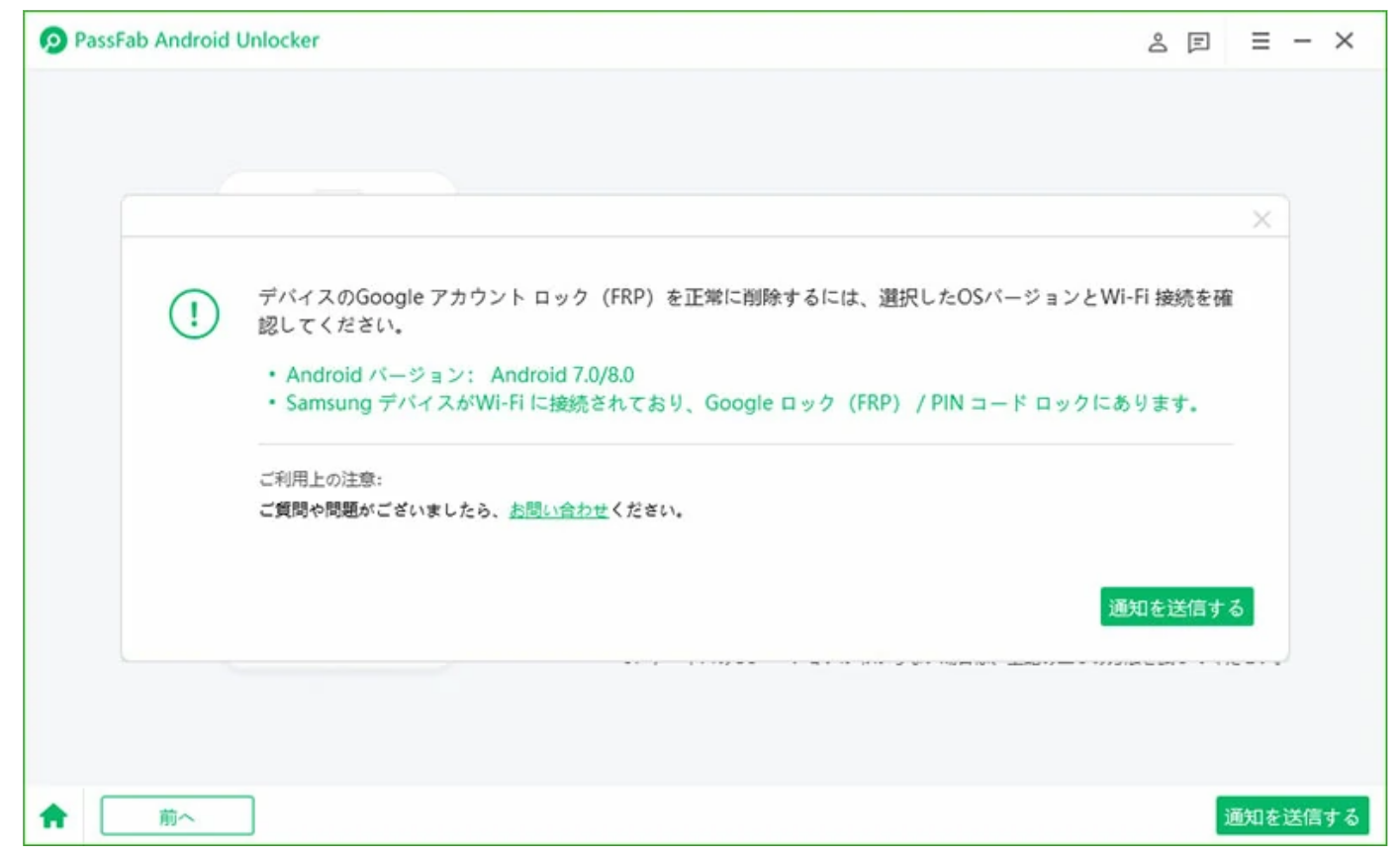 Step3:AndroidデバイスがWi-Fiに接続されていることを確認し、もう一度「通知を送信する」をクリックします。