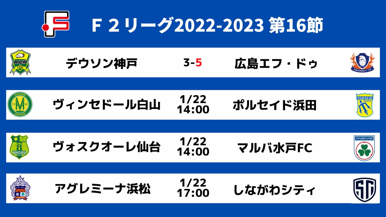 1月22日(日)に開催するFリーグ2022-2023 ディビジョン2 第16節の3試合を以下の通り、ELEVENにてライブ配信いたします!全試合を無料でご視聴いただけますので、ELEVENのアプリをダウンロードいただき、ぜひご視聴ください!
