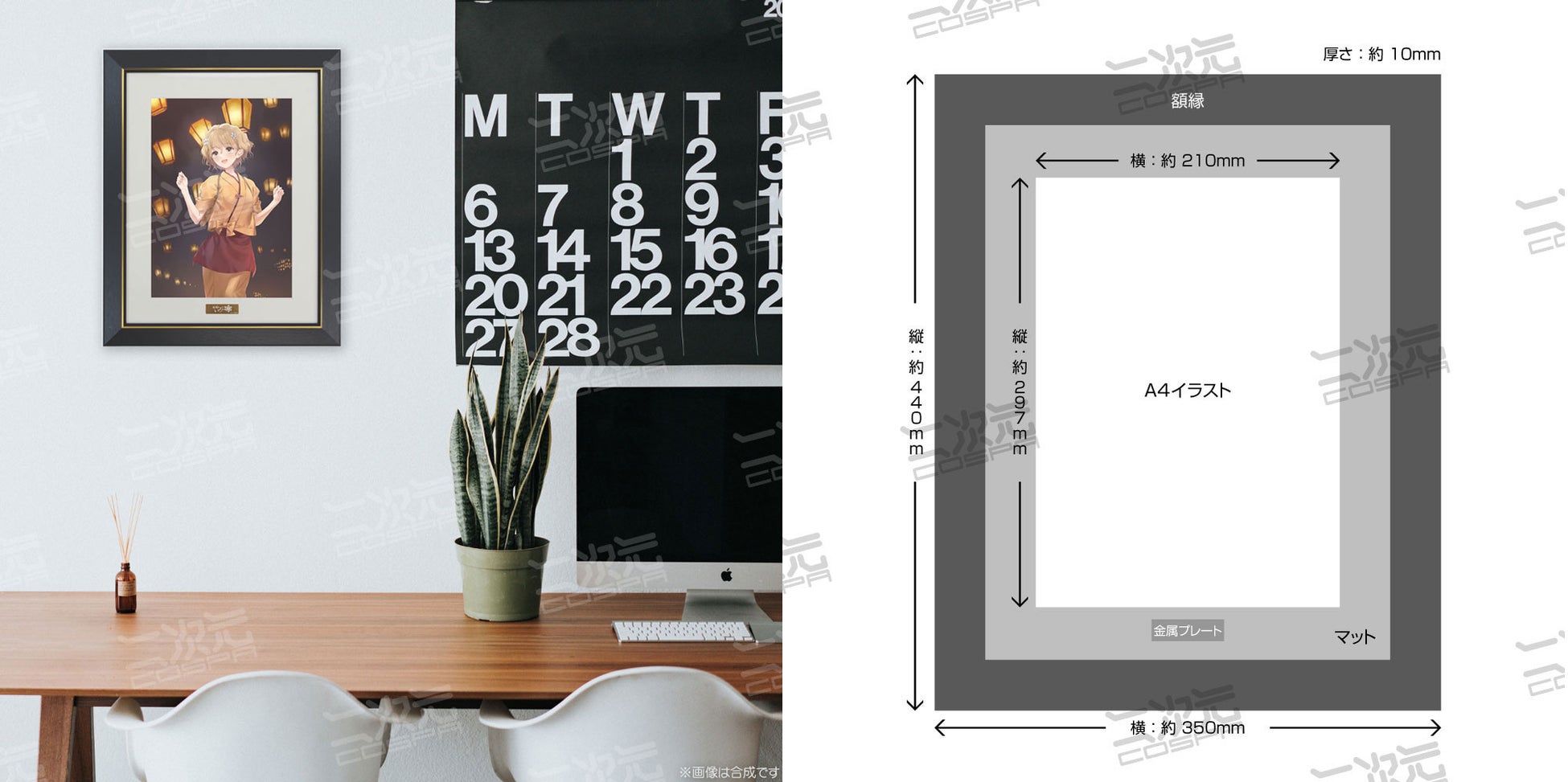 サイズ:<イラスト>(約)29.7cm×20.9cm(A4サイズ) <フレーム>(約)40.5cm×32cm 厚さ2cm