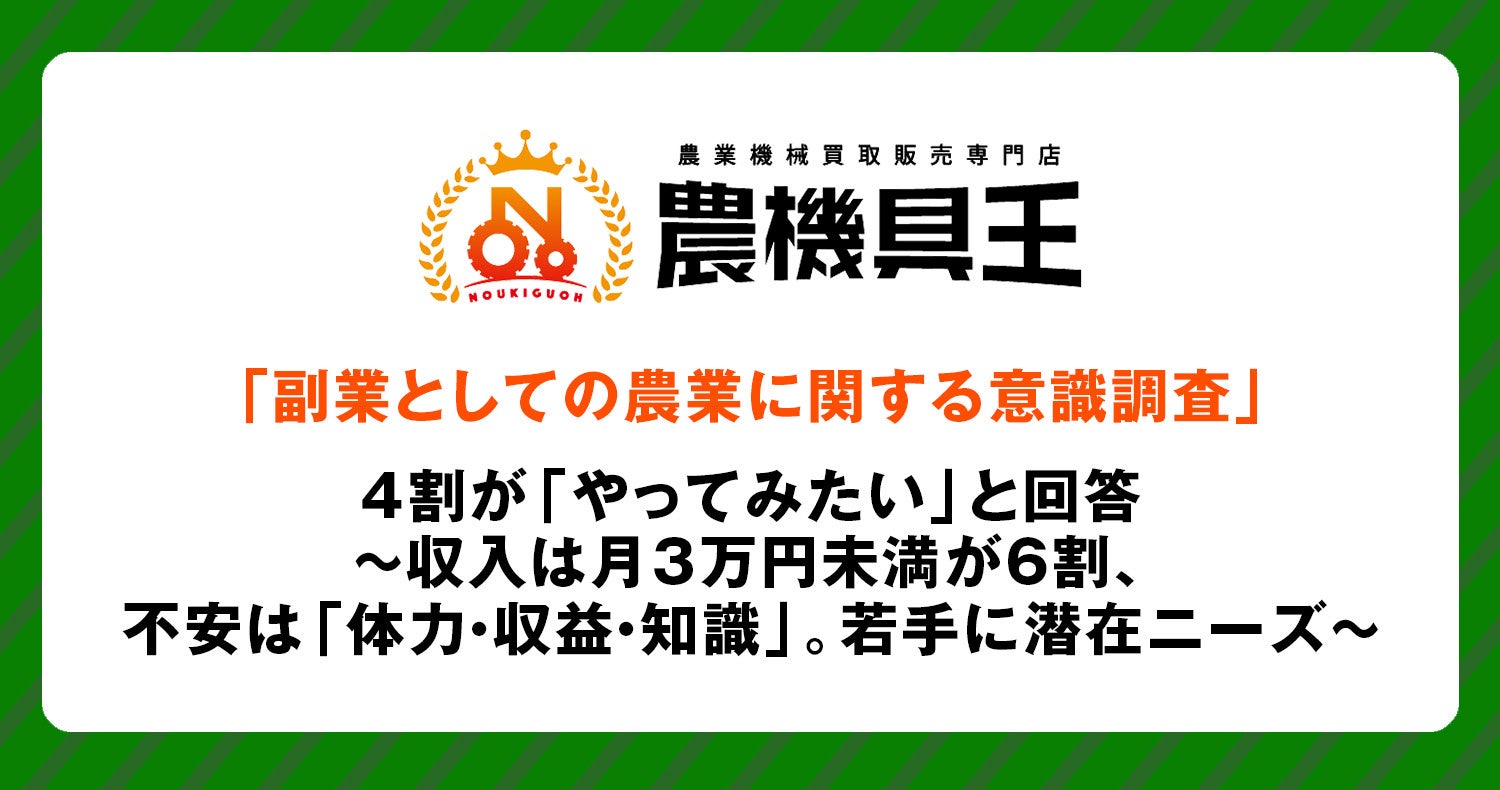 農機具王では、こうした調査結果を踏まえ、若手世代が安心して副業農業を始められる仕組みを今後展開してまいります。