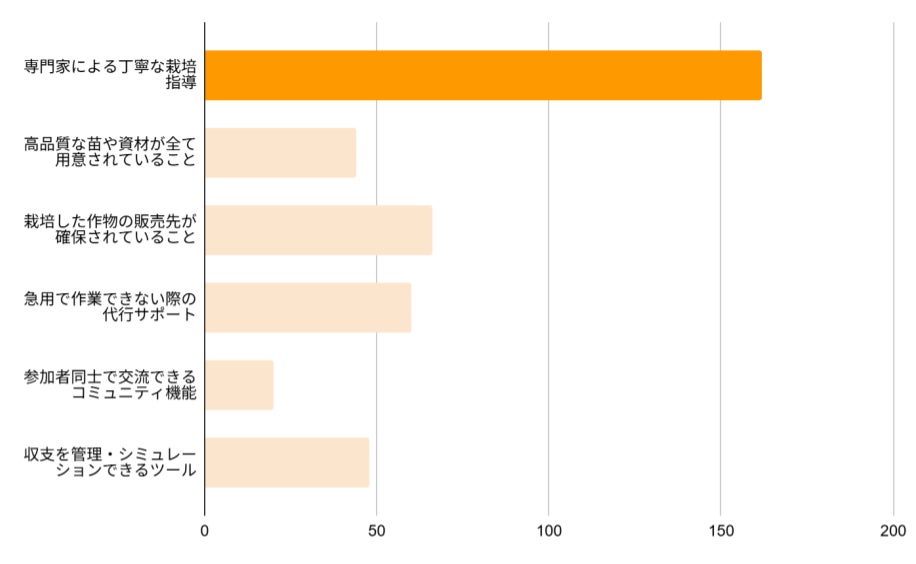 本調査からは、「副業として農業に興味はあるが、実際に行動に移せていない層」が約4割存在していることがわかりました。また、収益モデルの提示で関心は高まる一方、体力・収益・時間の不安が壁となっています。最も必要とされるのは、専門家の栽培指導や販売支援という実態が明らかになりました。