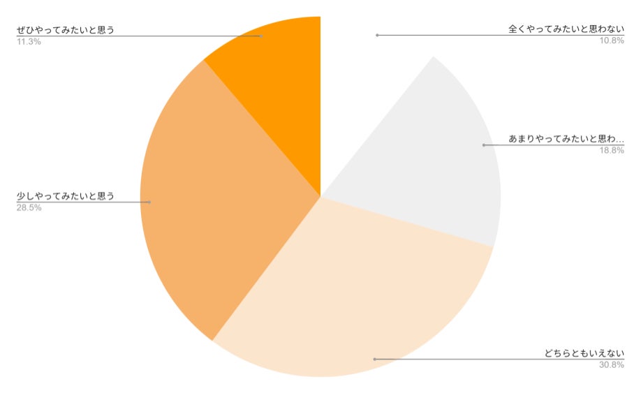 となり、40%が「やってみたい」と前向きな回答となりました。潜在的関心層は一定数存在することがわかりました。