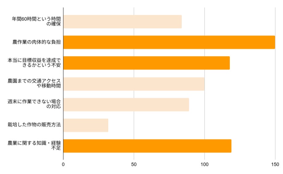 「「副業としての農業」に関して、懸念・不安に感じることは何ですか。(3つまで)」の質問をしたところ、