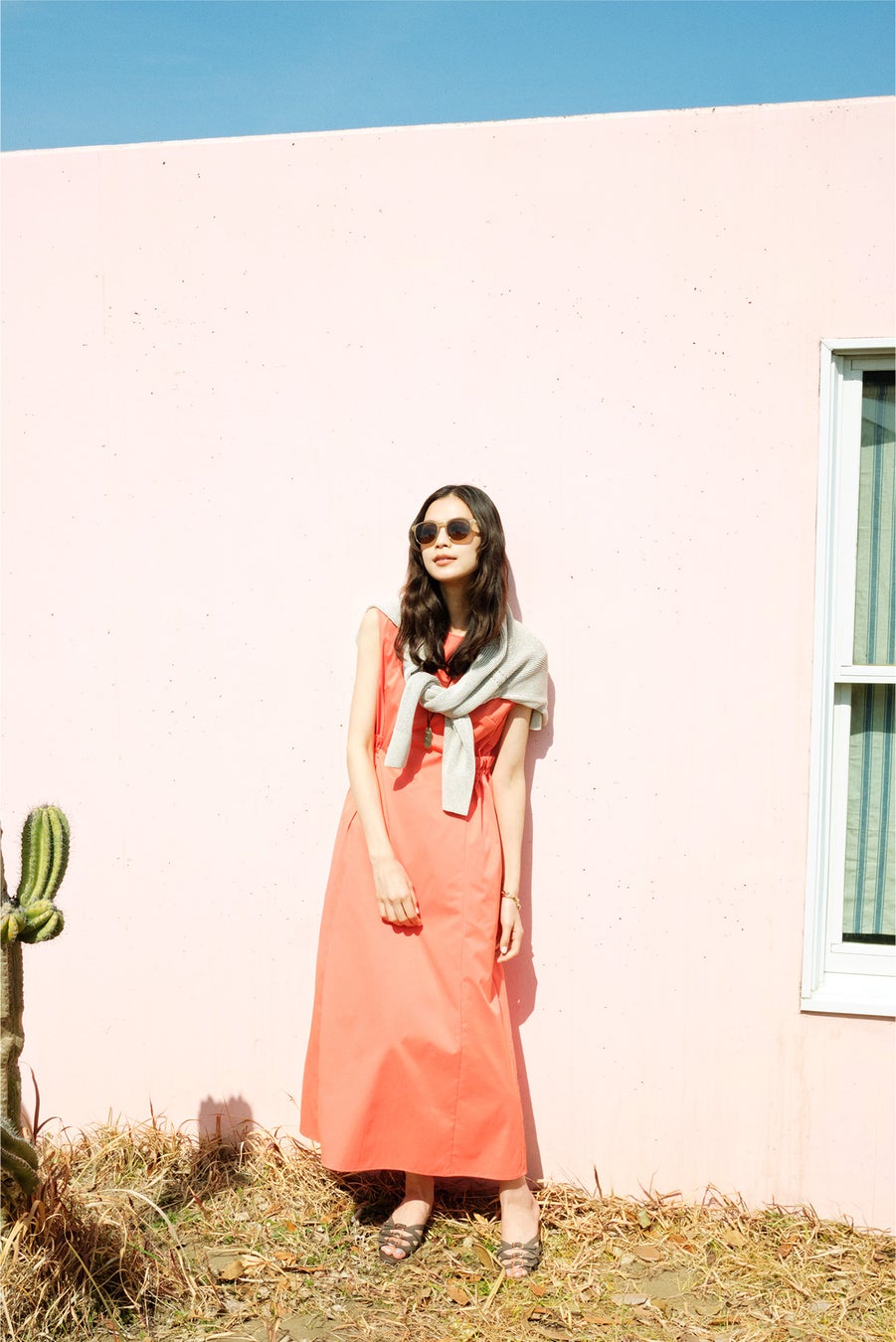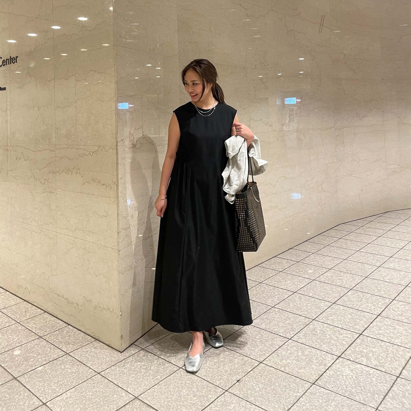 ●すっきりとしたノースリーブのマキシ丈ワンピース