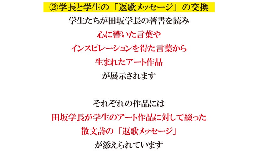 『田坂広志展』を7月26日より原宿で開催。田坂学長が新時代の教育理念を語る「言葉×アート」の展示会。注目は、学生のアート作品に田坂学長が散文詩で応える「返歌メッセージ」