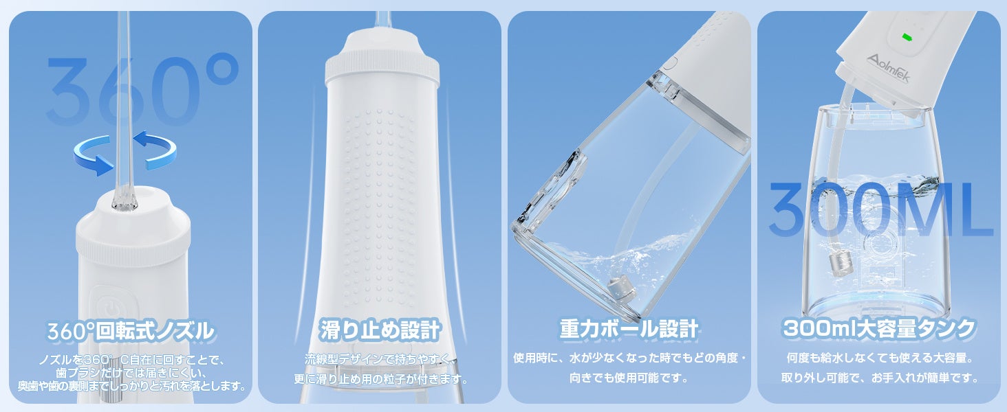 今すぐお得にゲットして、毎日の口腔ケアを一新しましょう!Aolmfekの口腔洗浄器は、効率的で清潔なケアを提供し、忙しい日々にもぴったりのアイテムです。この機会をお見逃しなく!